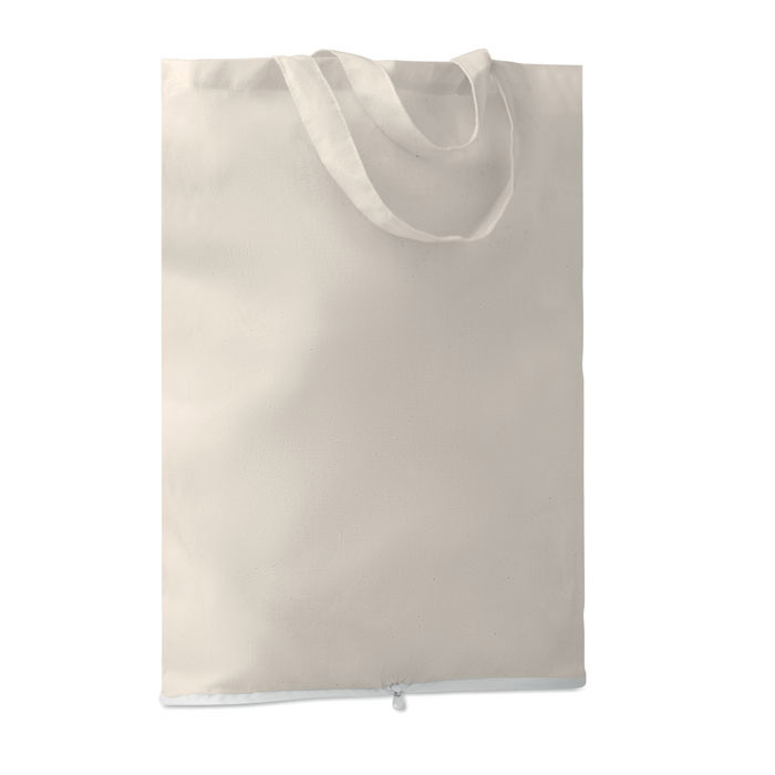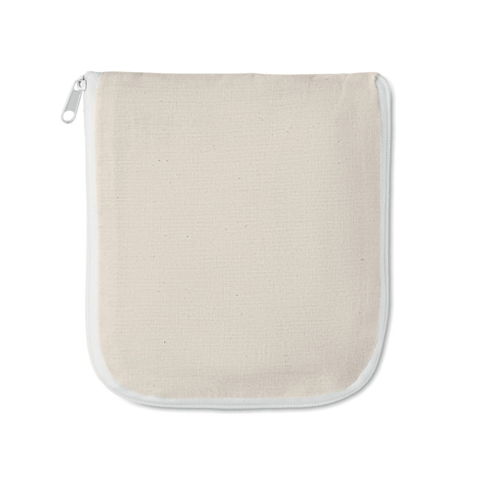 Foldable shopping bag in cotton with short handles. 100 gr/m². Supplied unfolded.