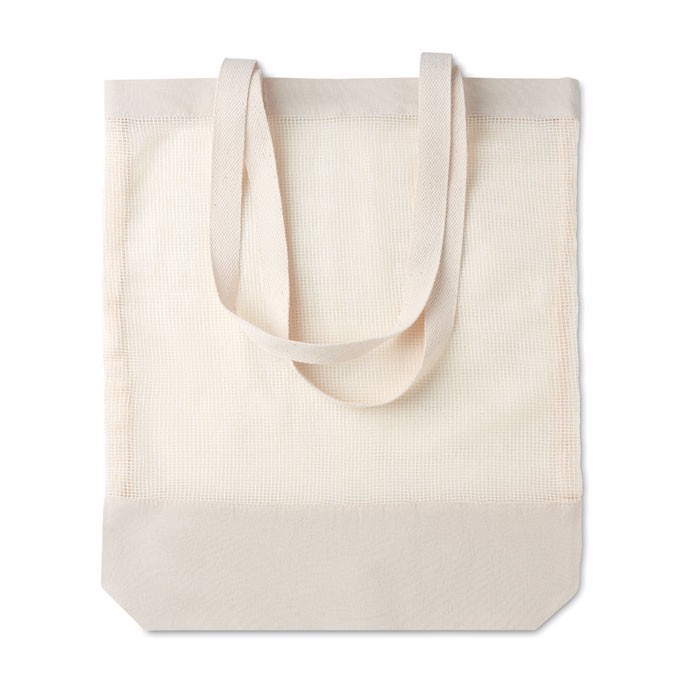 Mesh cotton shopping bag with long handles. 170gr/m².