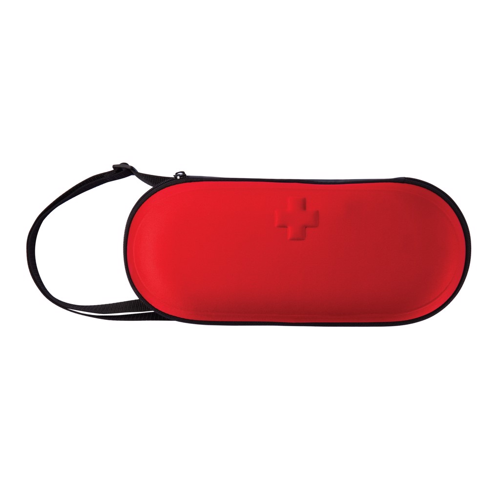 EVA case with reflective vest, dynamo torch, silver emergency blanket, triangular bandage, PBT bandages, alcohol pads, antiseptic swabs, cleansing towelettes, non-woven swabs, tape, plasters, pins and plastic scissors all conform EN13485:2003.