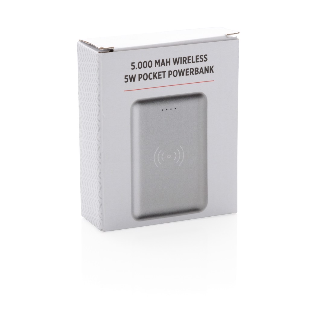 Ultra-compact 5.000 mAh powerbank made out of ABS that fits into your pocket so perfectly that you can take it anywhere you go. Supports 5W wireless charging and charging via USB port by cable. When fully charged it will provide you with enough energy to re-charge your mobile phone up to three times. The powerbank contains a long lasting grade A 5.000 mAh high-density lithium polymer battery. The power indicators will indicate the remaining energy level so you always know when to re-charge. Micro USB port-in: 5V/1.5A Output: 5V/2.1A.