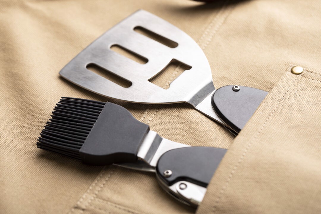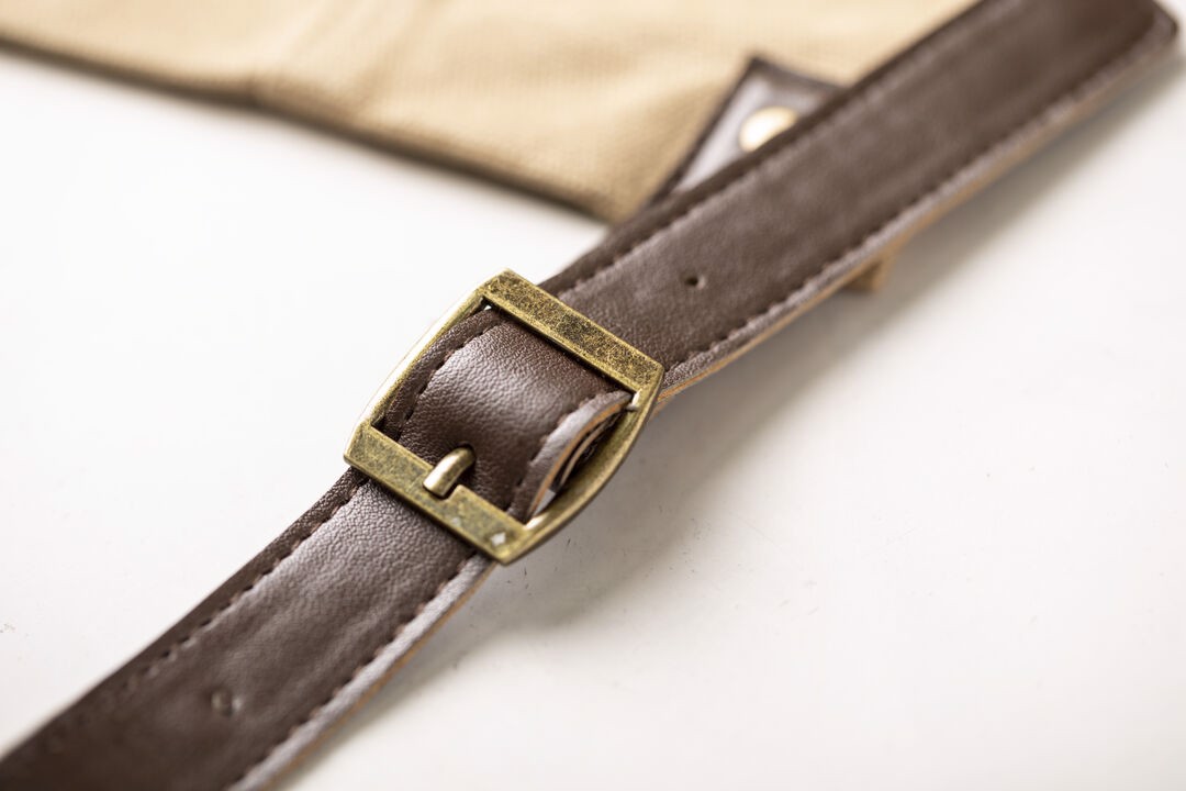 Pro apron in high quality, in resistant 100% cotton canvas material of 340g/m2. Fitting under the knee, with neck and waist straps in resistant PU leather, with buckle adjustments and reinforced with metal rivets. Including many pockets for several utensils, with reinforced stitching.