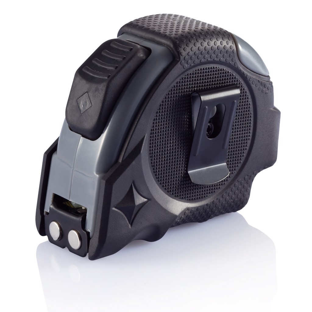 With wrist strap and belt clip, tape automatically stops and retracts with push on the button, including magnetic hook.
