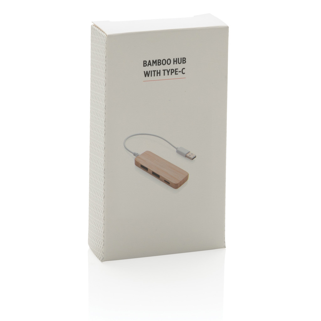 Bamboo USB 2.0hub with 2 USB A ports and one type C port to extend the USB ports on your computer. With integrated PVC free TPE cable.