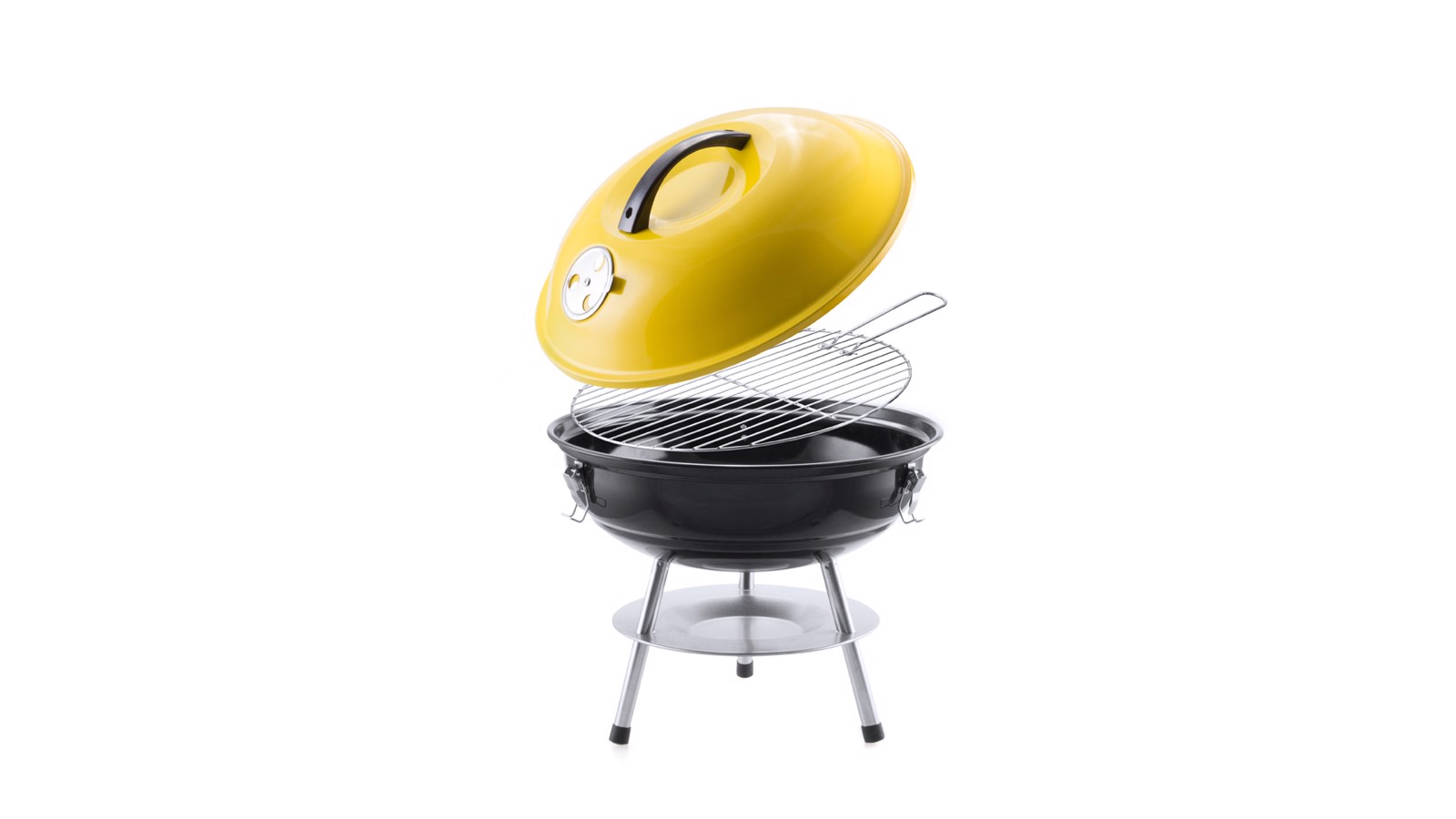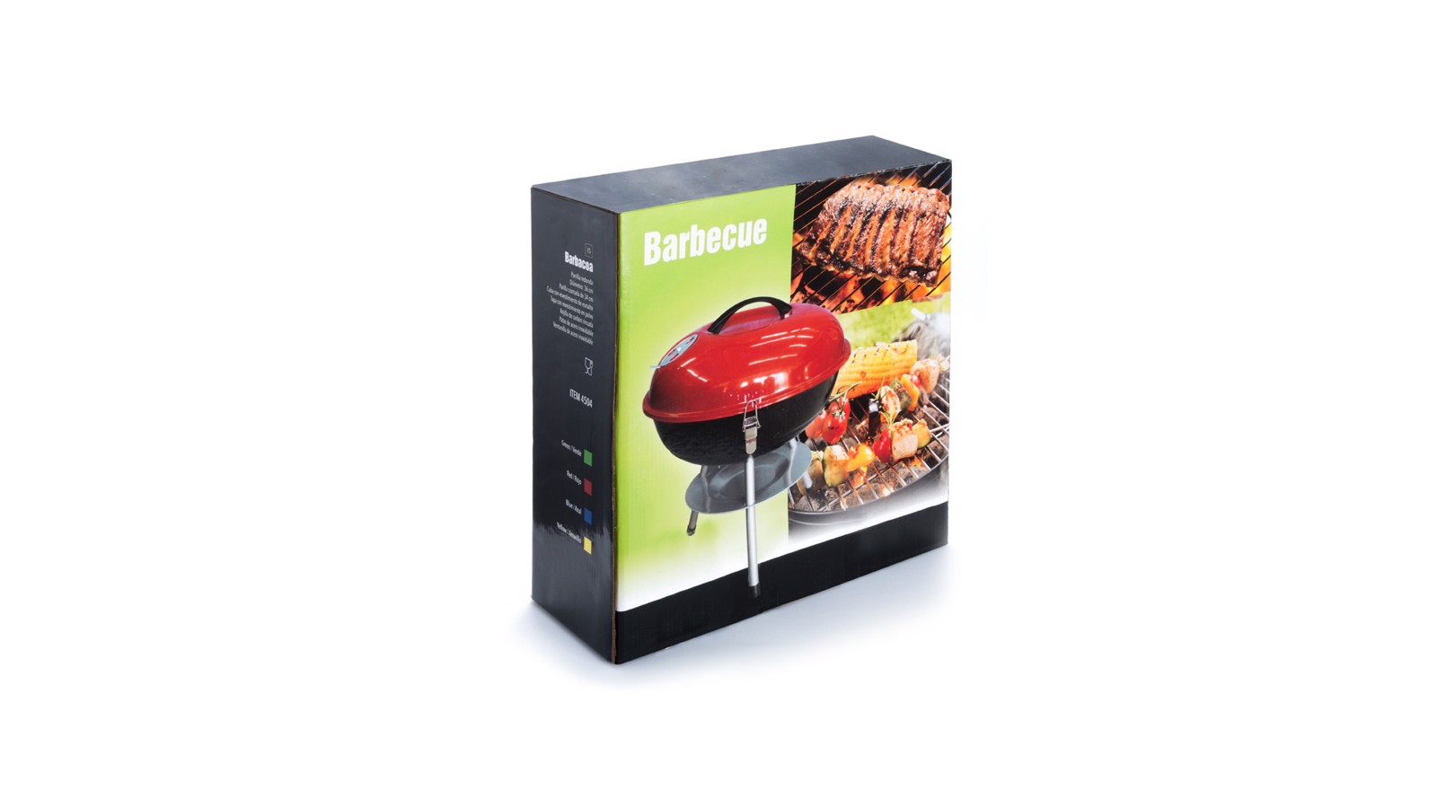 Barbecue in resistant steel with base in black color and cover in bright tones. Coverwith comfortable grip and ventilation holes, metal grill, non-drip plate and non-slip feet. Presented in an attractive design box.