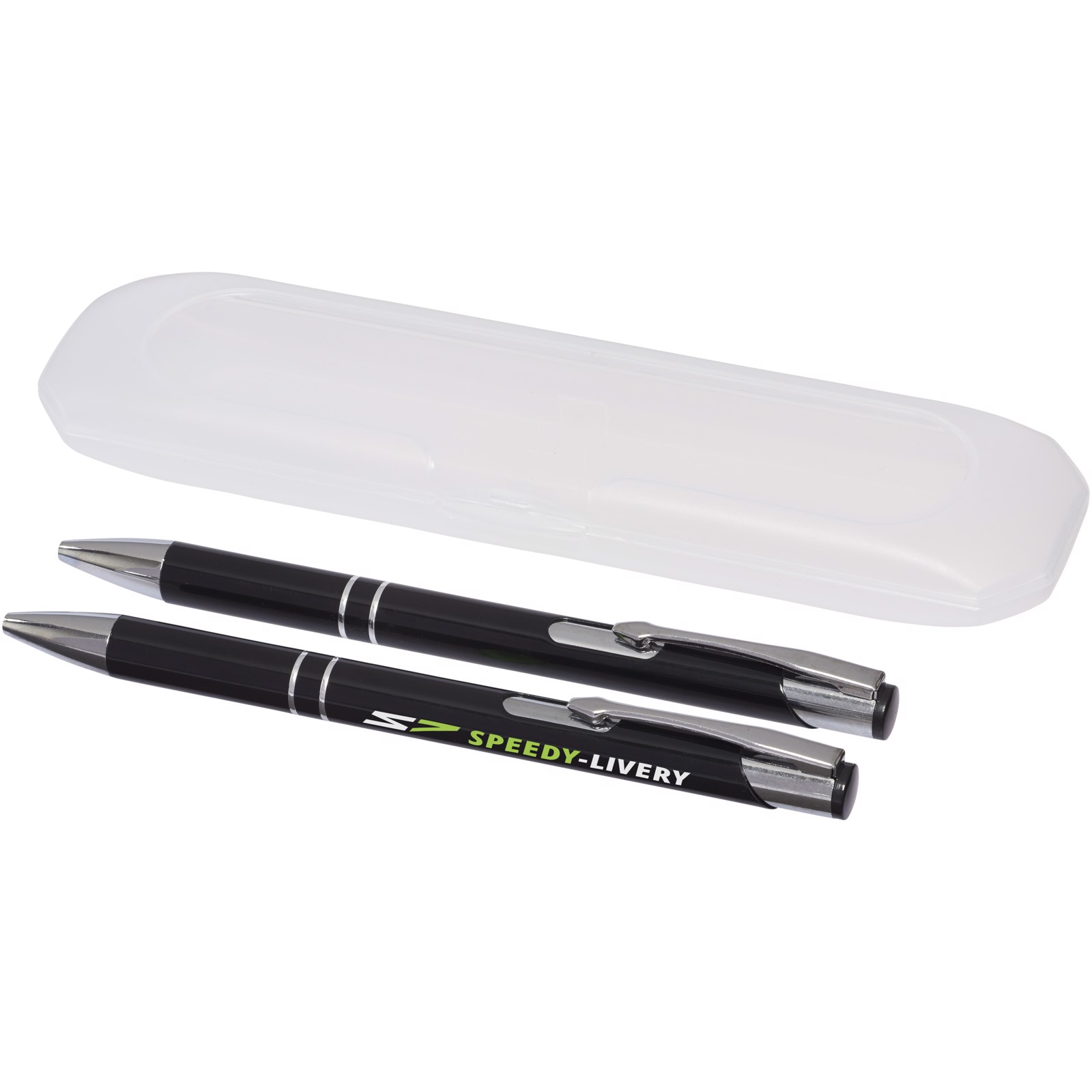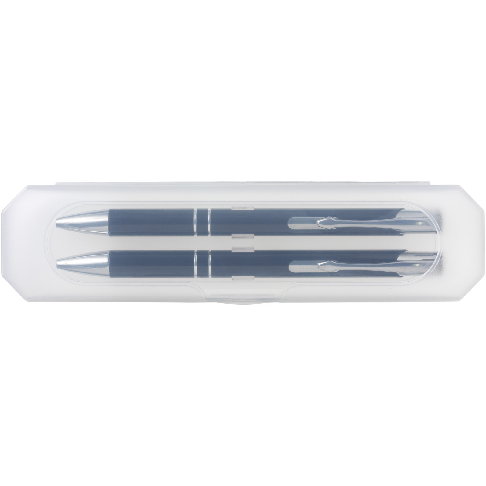 Ballpoint pen and mechanical pencil in plastic gift case.