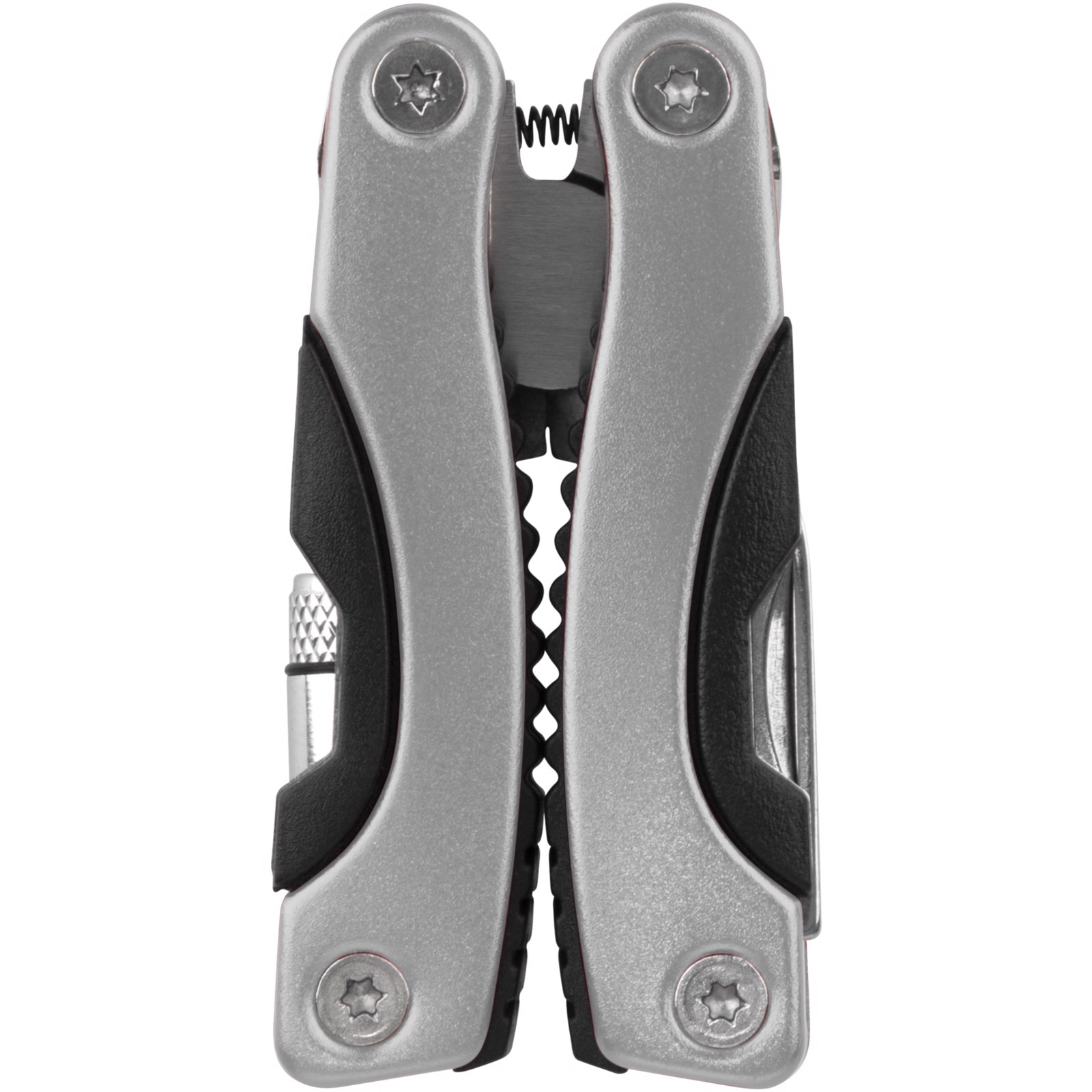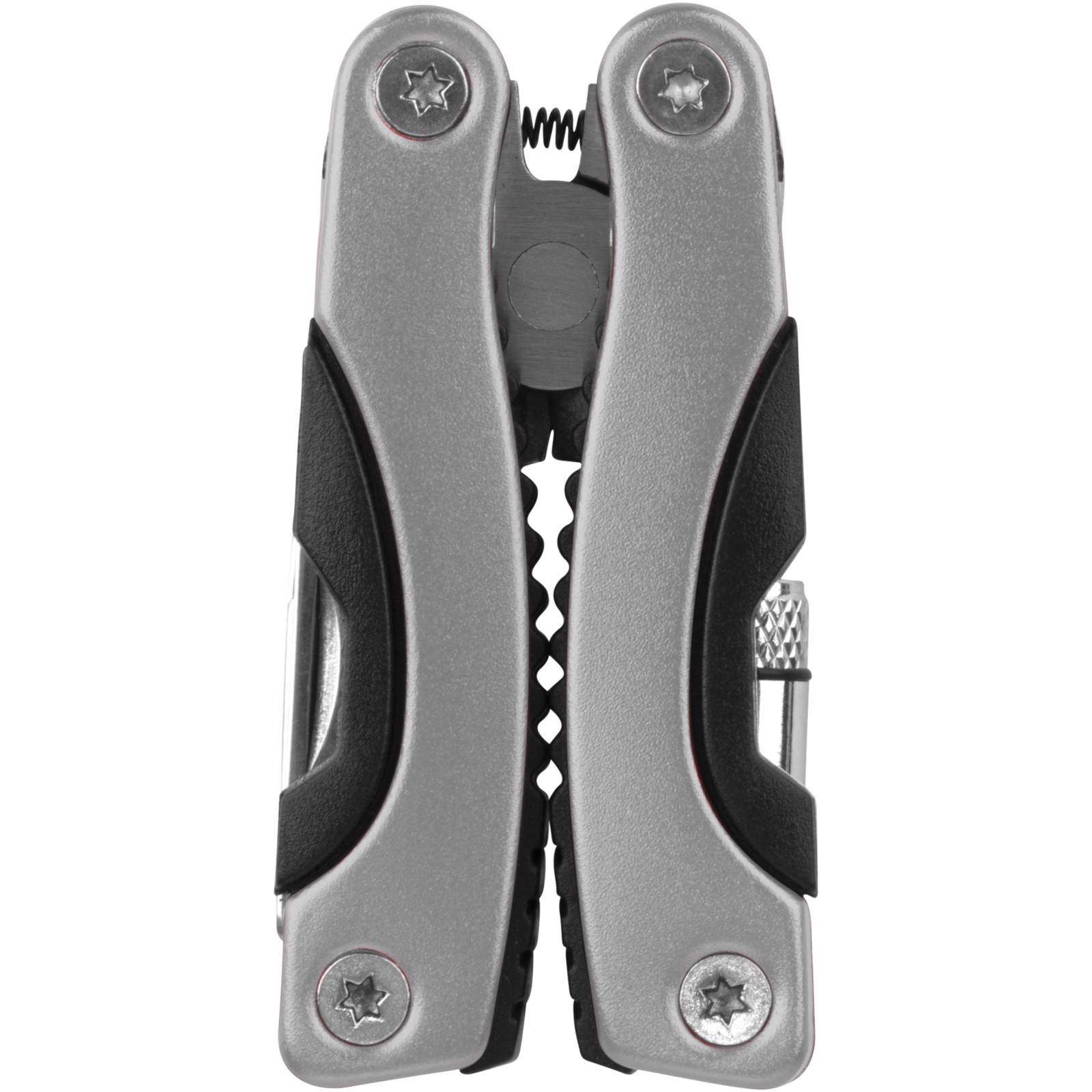 8 function multi tool includes single LED flashlight. Includes nylon pouch with belt loop and Velcro closure. Batteries included.