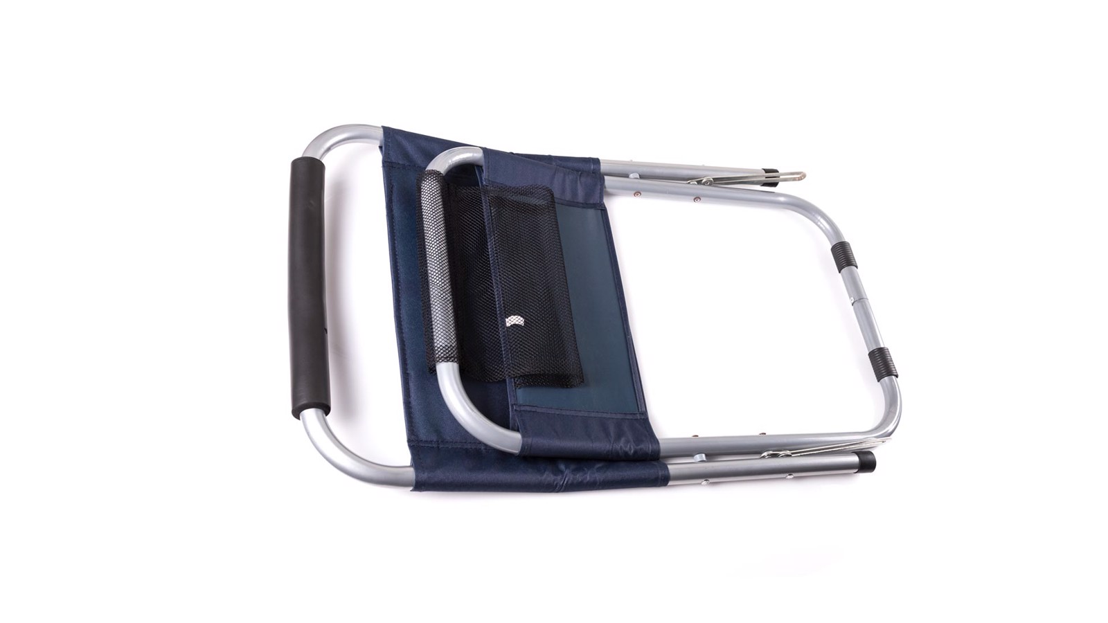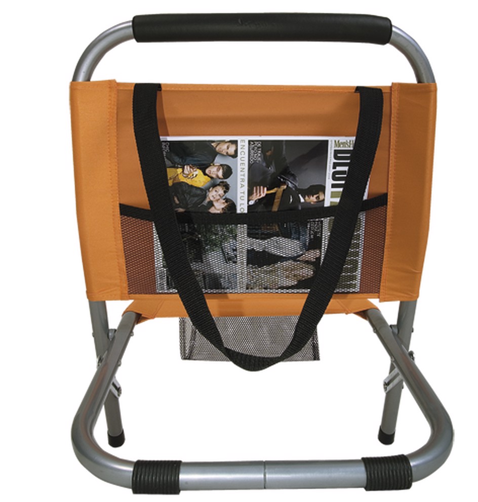 Super lightweight folding chair, with resistant tubular aluminum body. In resistant 600D polyester, in a wide range of tones, with reinforced seams and mesh compartment. With padded handle, nylon shoulder strap and non-slip rubber reinforcements on the legs. Foldable. Extralight