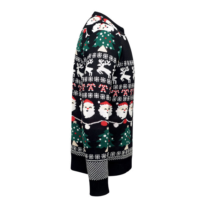 Christmas sweater with 10 LED lights in Acrylic. Size: L/XL. Show up at work or at the family Christmas dinner in style with this festive sweater. Removable battery compartment. Included 2 CR2032 batteries.
