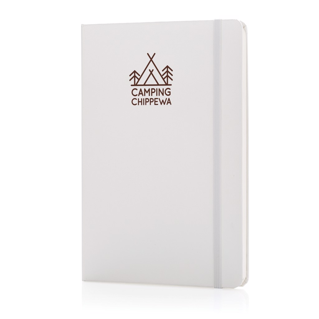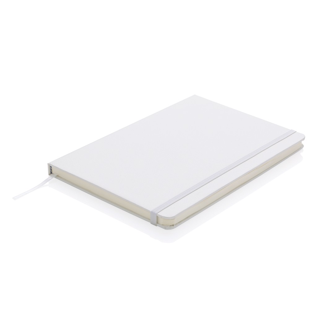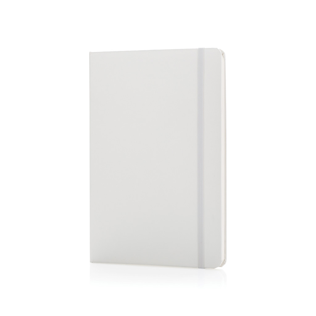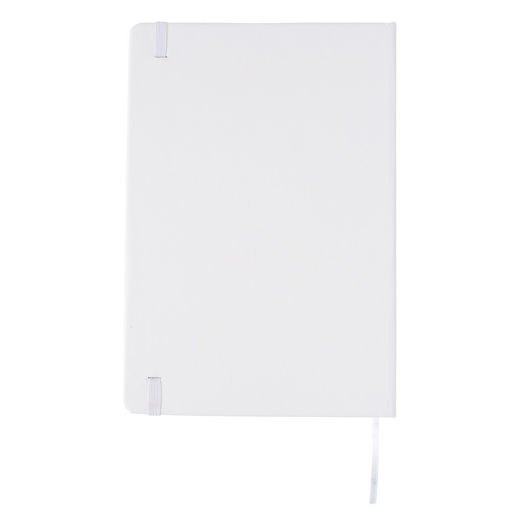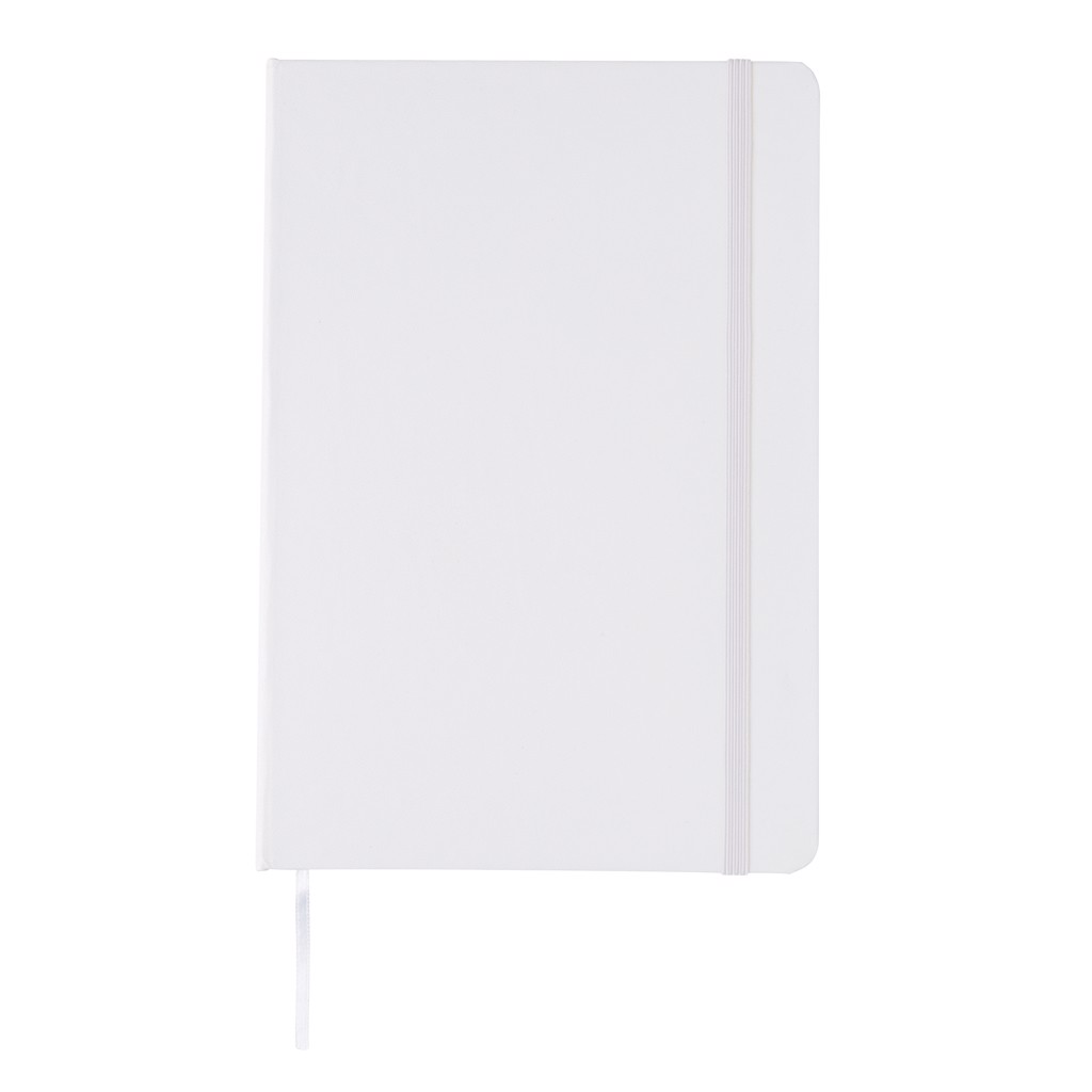 Ruled A5 hardcover standard notebook with elastic closure and bookmark ribbon. 144 pages of 70g/m2 paper inside. Cream coloured pages.
