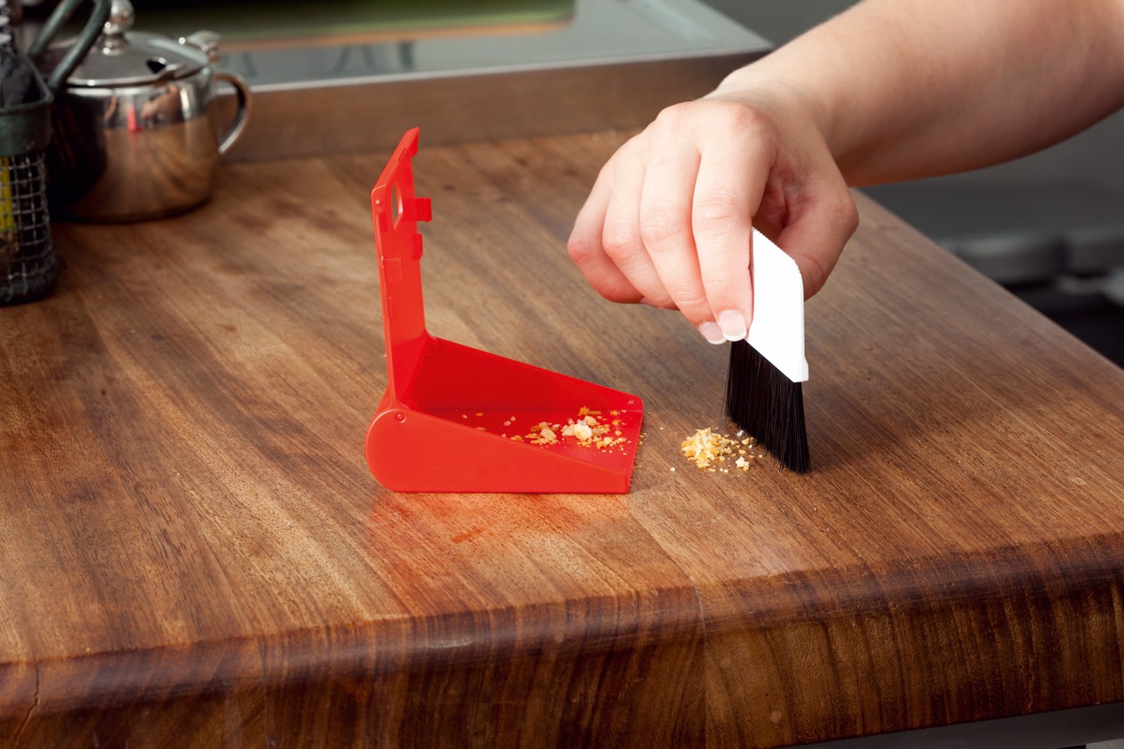 Folding mini cleaning set with brush and dustpan. With body in bright tones. 2 Accessories