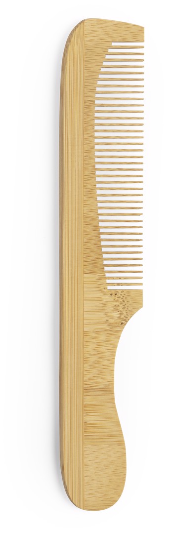 Nature line comb in polished bamboo, with wide printing area on handle.