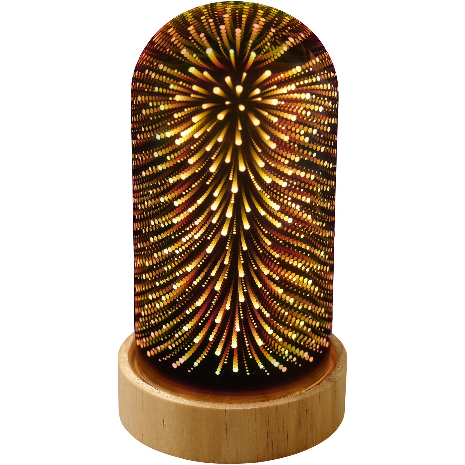 Decorative lighting cloche with a soothing 3D effect. Has a mirrored surface when not lit up.
