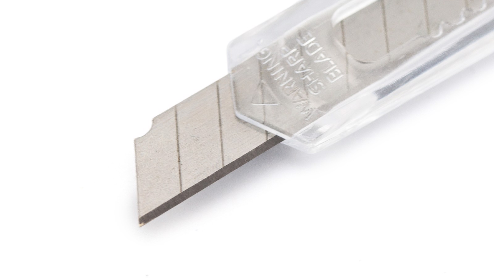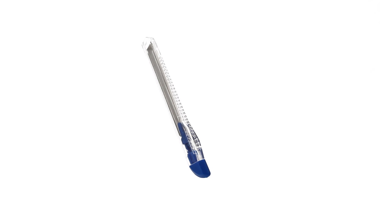 Cutter with die-cast aluminum body and transparent housing. With safety lock mechanism and removable hood for blade cut adjustment.