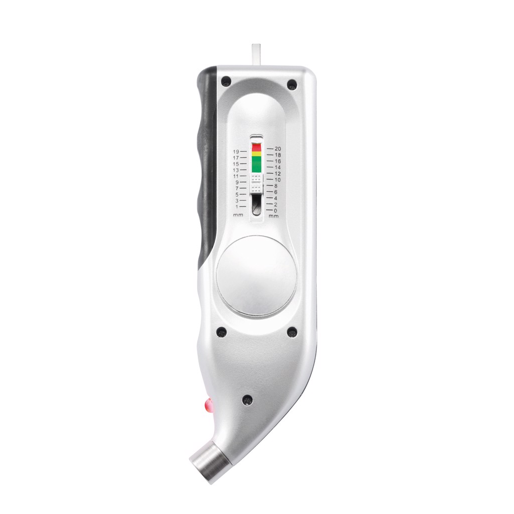 Digital tyre gauge with tyre depth gauge, silver ABS body, black grip with back light, red LED. Range 5-100 PSI, 0,5-7 Bar, 50-700 Kpa.
