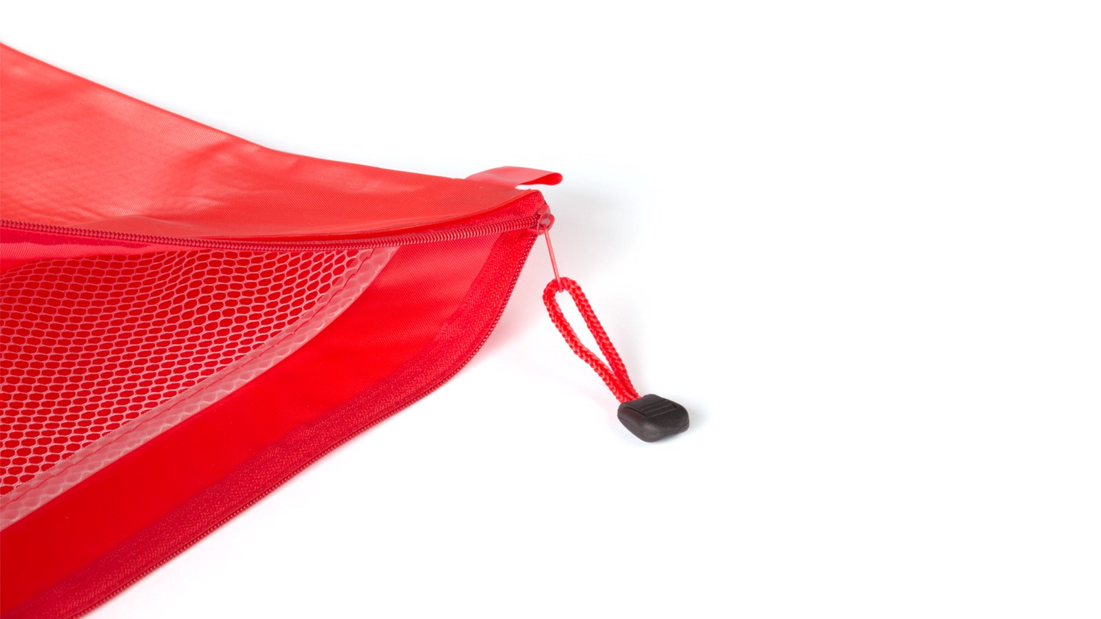 Original, hermetically sealed document bag, with body in elegant, brightly colored PVC. Matching color reinforced handle strap for comfortable opening.
