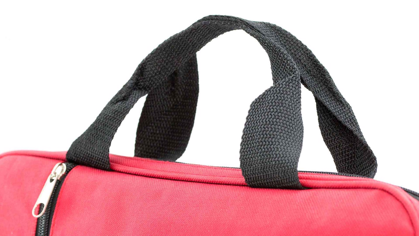 Document bag with zipper closure. With original vertical front pocket, in soft 600D polyester finish, in bright tones and with reinforced carrying handles.