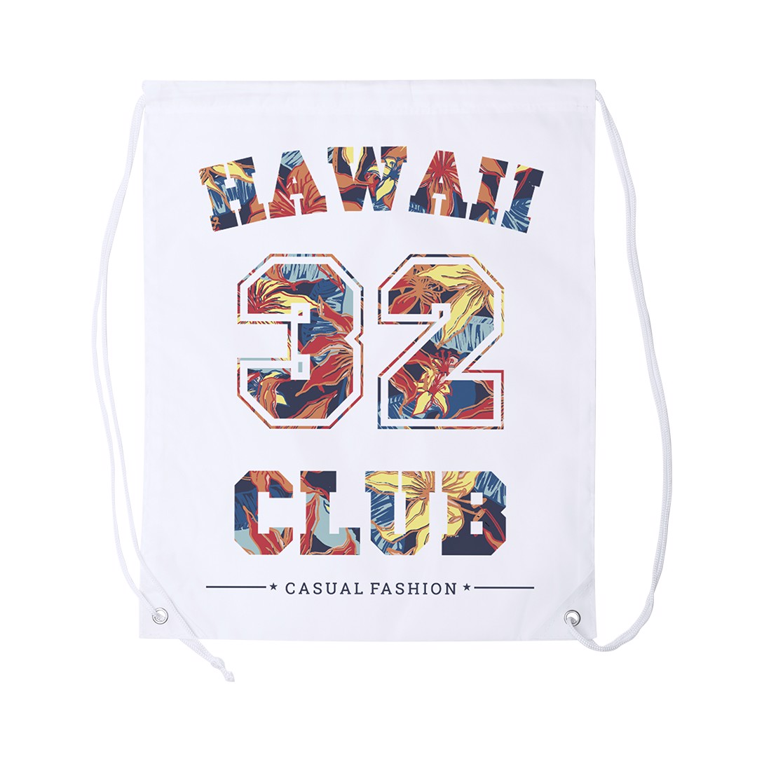 Drawstring backpack in soft polyester 210T, available in a wide range of colors. Black color, self-adjusting strings, reinforced corners in matching color with the fabric and resistant metal eyelets. White color special for sublimation.