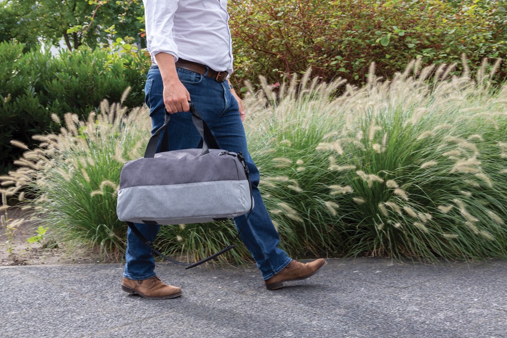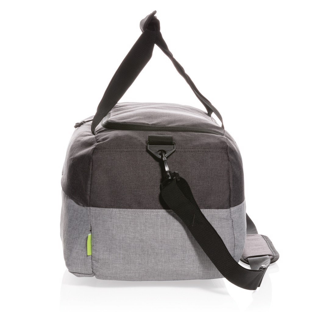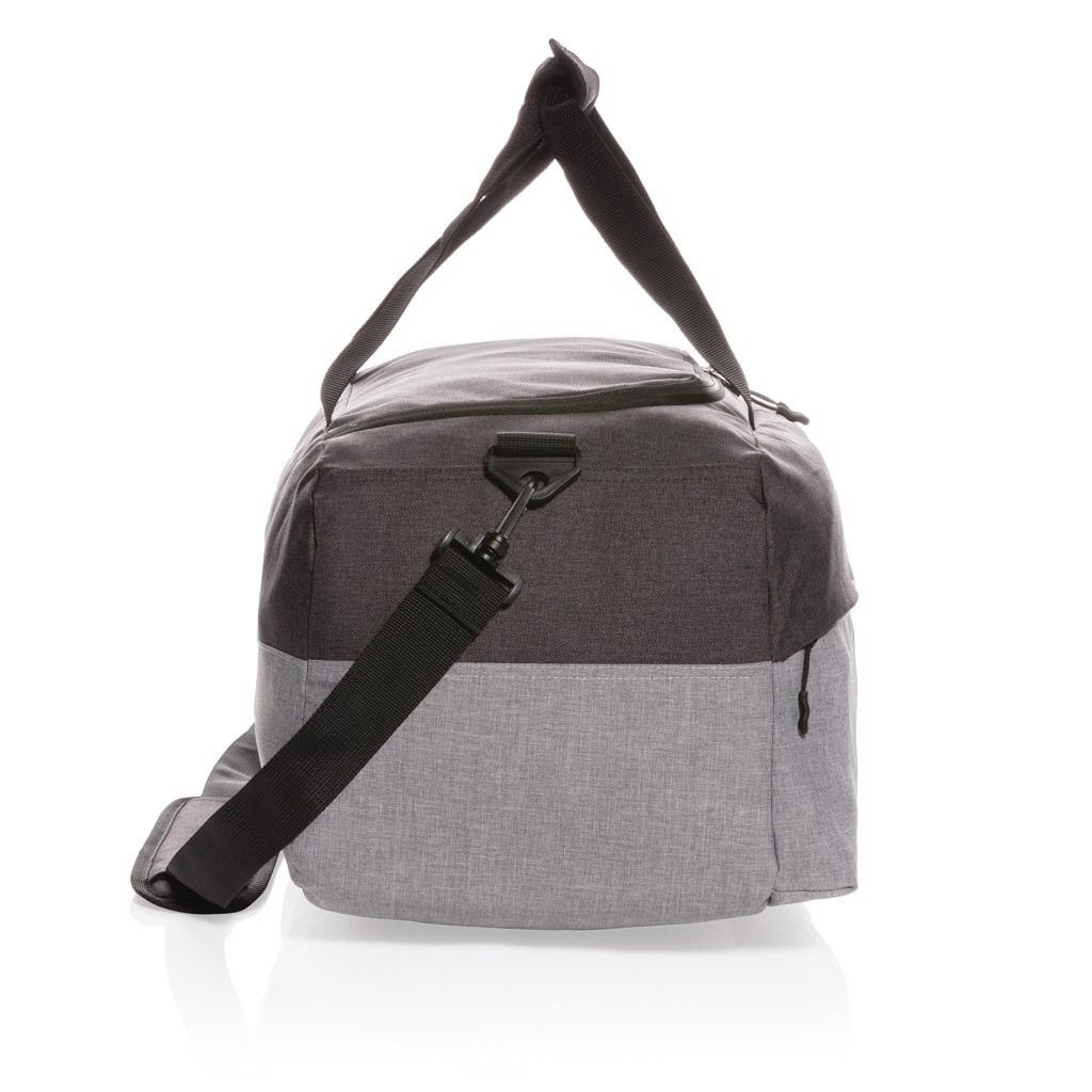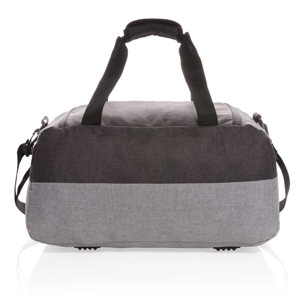 Perfect as a carry-on bag or pack for an overnight trip. This weekend bag is made of reused plastic bottles, so not only stylish in a two-tone grey but also sustainable. The bag features a U-shaped top opening for all your gear, one large front pocket for quick access to your belongings and a RFID pocket for your passport and wallet. A top handle and a removable shoulder strap provide versatile carrying options. PVC free. Exterior: 100% 600D melange RPET / Lining: regular 210D polyester.