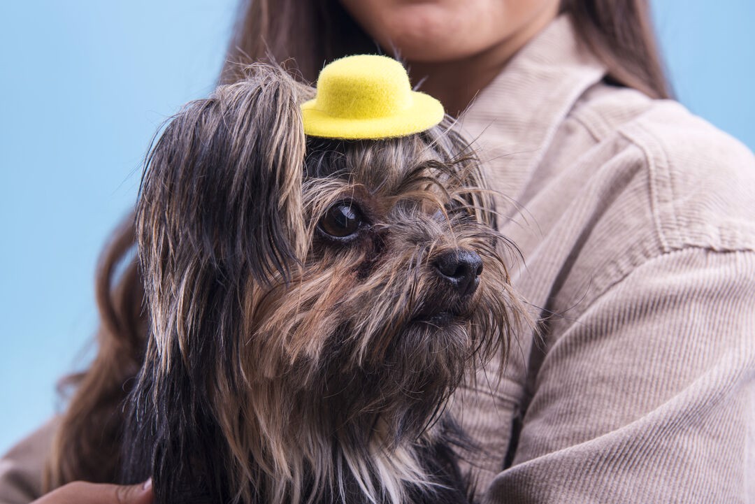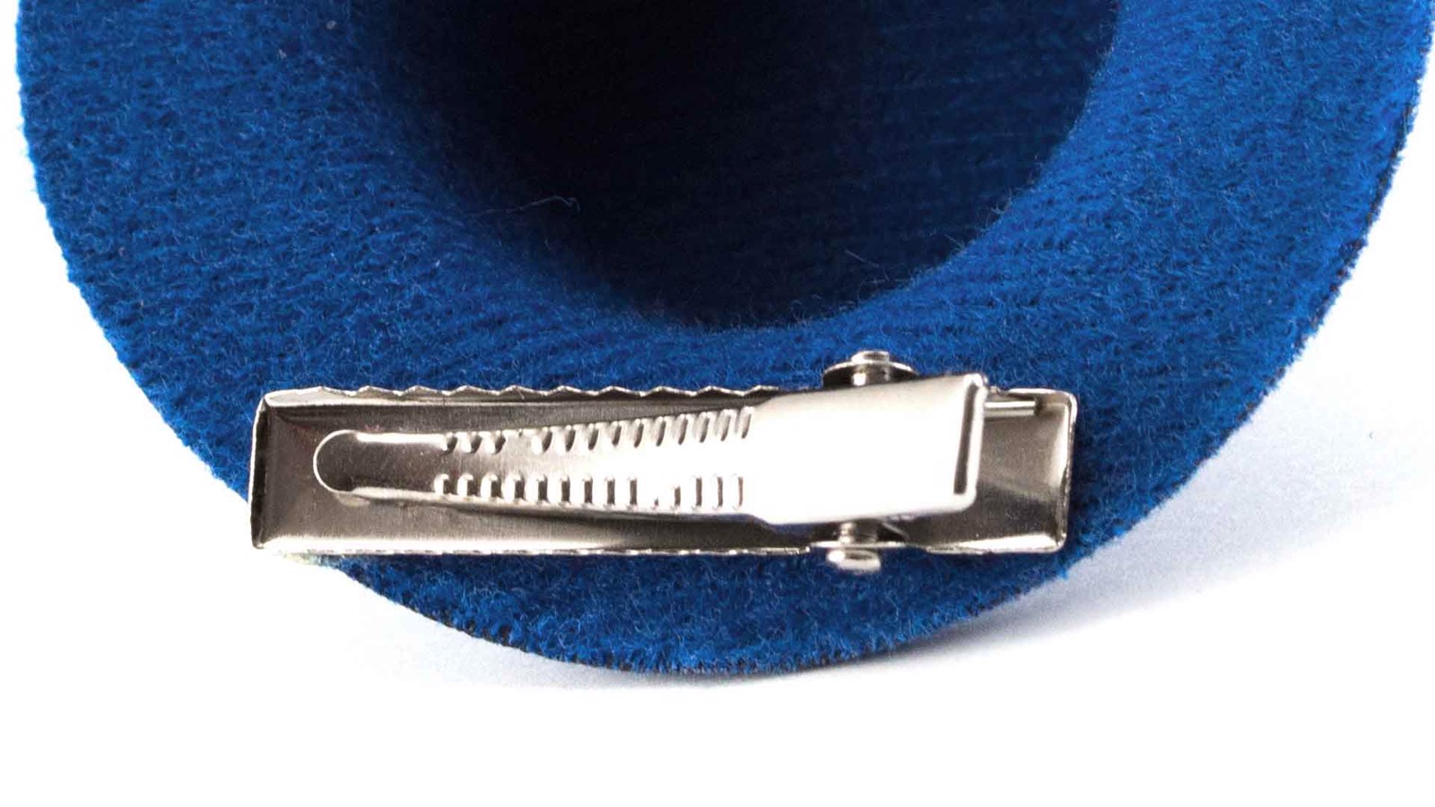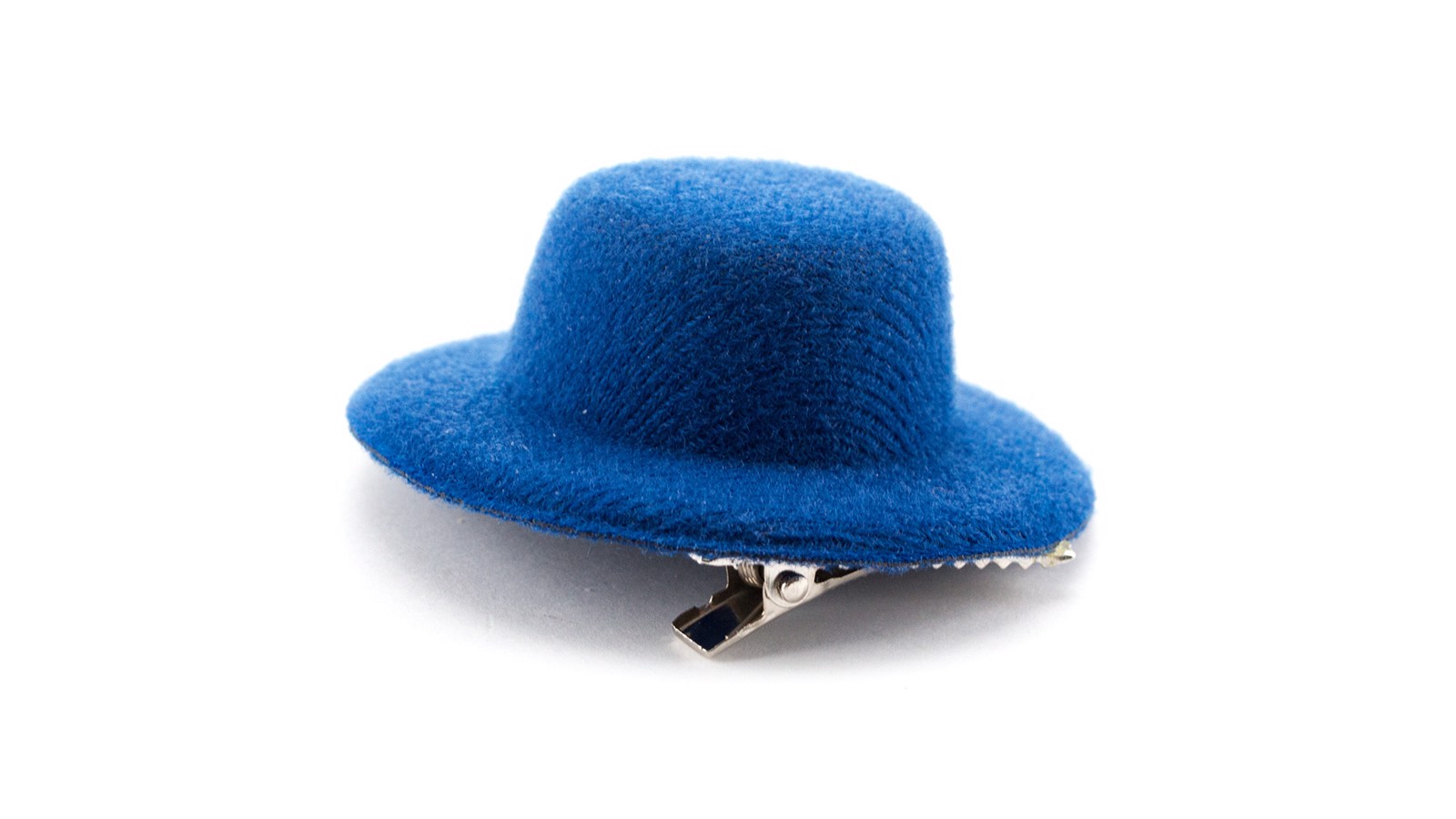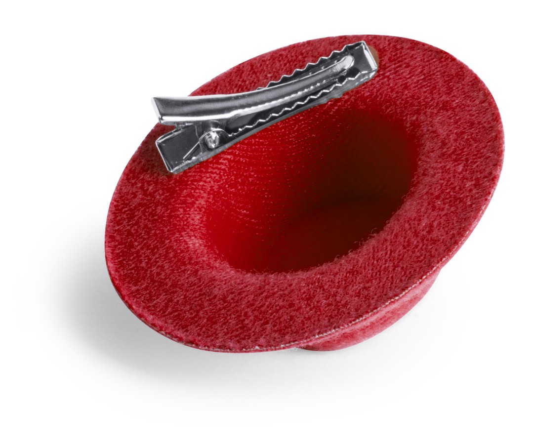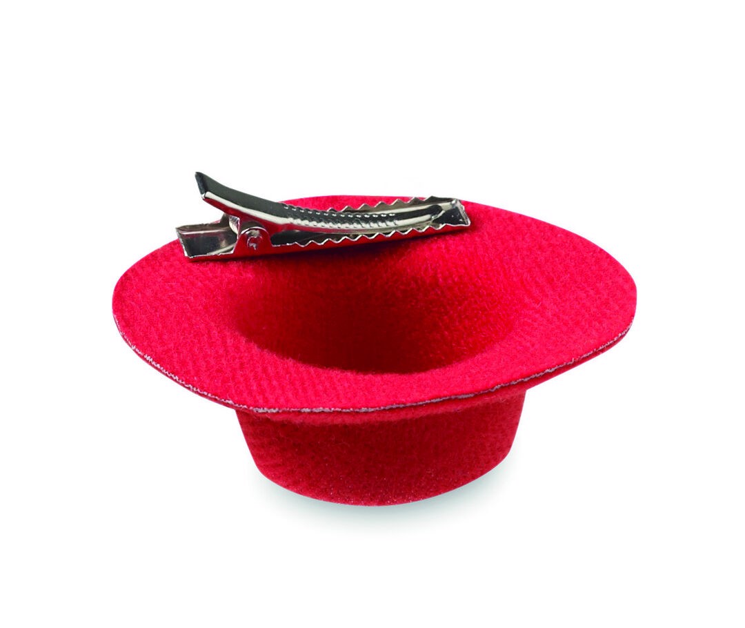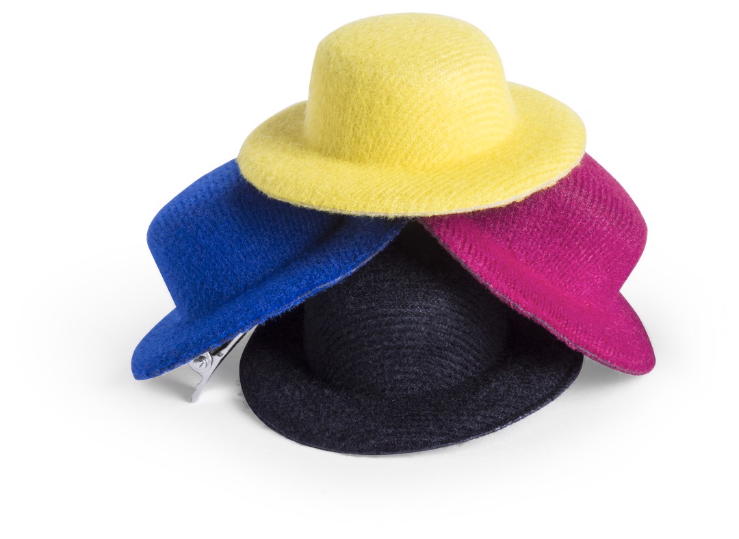 Original hair pin in velvet and shaped like a hat in varied bright tones.