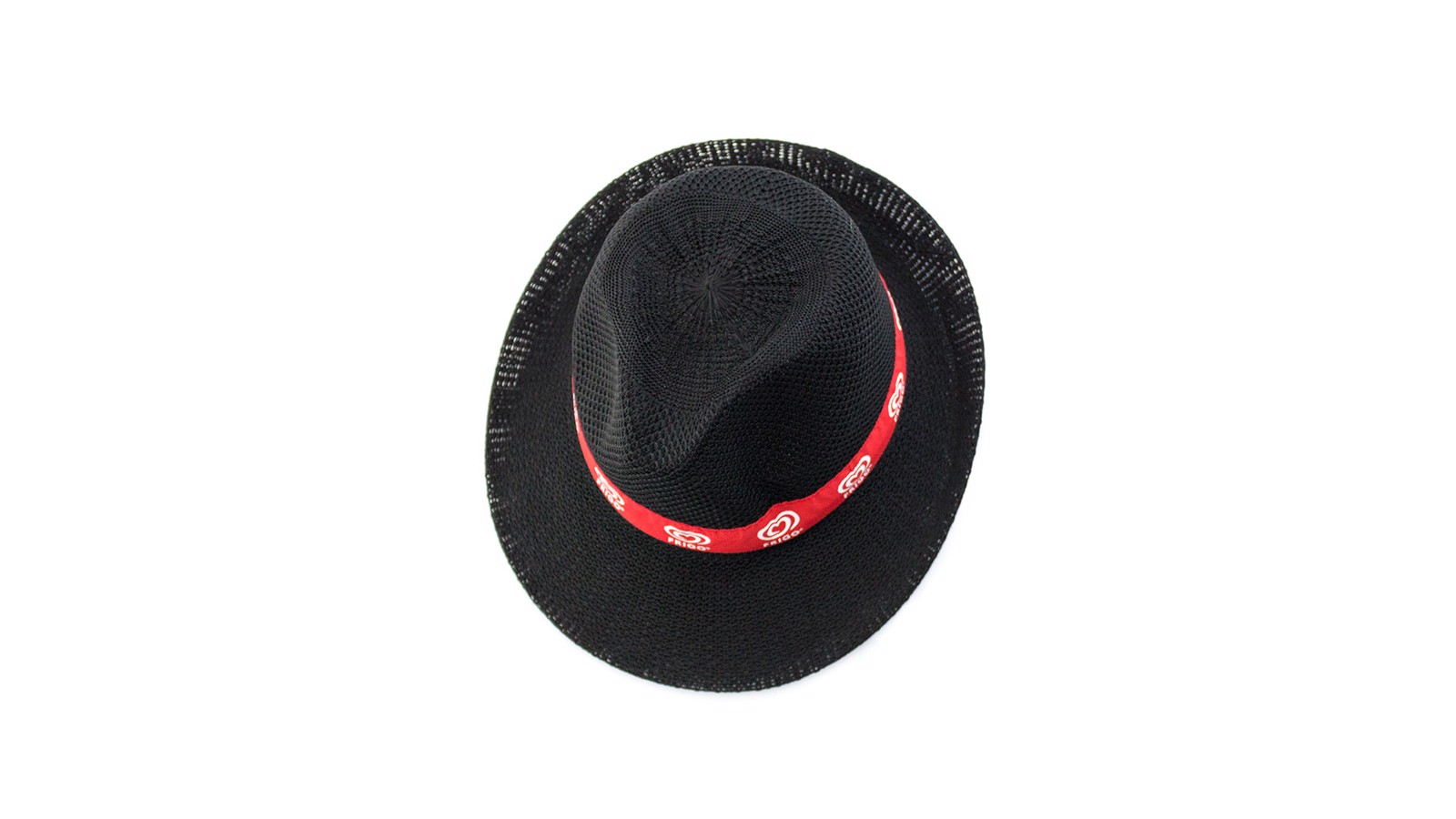 High-quality hat in soberly colored synthetic material with comfortable matching color inside ribbon.