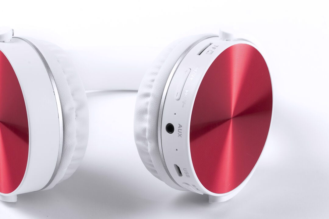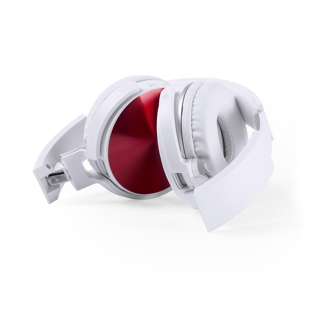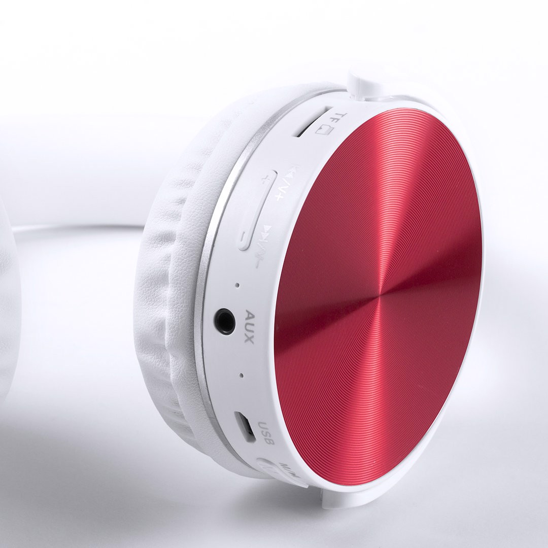Folding headphones with bluetooth connection and cheerful 2 color design in a wide range of colors . Micro SD card slot -card not included-, hands free function, FM radio, line in -mini jack 3,5mm cable included- and rechargeable via micro USB cable -included-. Shell protectors in shiny finishing aluminum material and comfortable PU leather ear pads in white color. Presented in an individual design box. Bluetooth Connection. 3,5 mm Jack Socket. USB Rechargeable. Cable Included