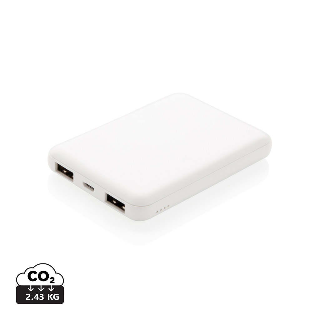 Ultra-compact 5.000 mAh powerbank made out of lightweight ABS that fits into your pocket so perfectly that you can take it anywhere you go. When fully charged it will provide you with enough energy to re-charge your mobile phone up to three times. The powerbank contains a long lasting grade A 5.000 mAh high-density lithium polymer battery. With dual USB port. The power indicators will indicate the remaining energy level so you always know when to re-charge. Input 5V/2A. Output USB 1: 5V/2A Output USB 2: 5V/1A