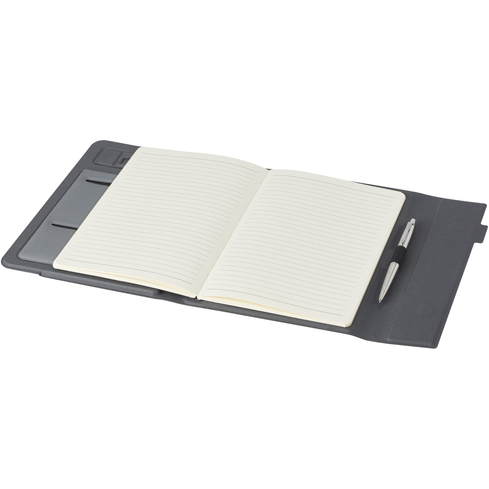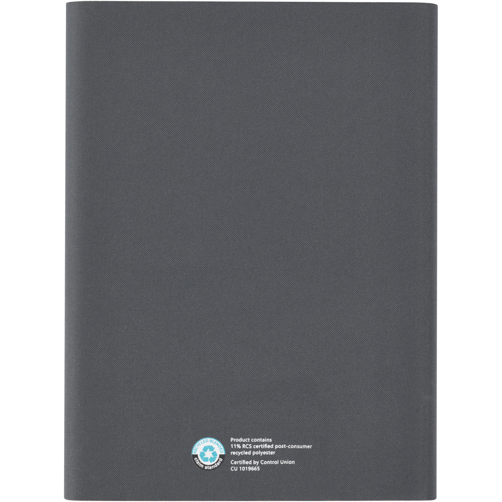 The RCS certified Liberto padfolio is partly made from recycled post-consumer polyester, making this padfolio a more sustainable choice since it helps to reduce the use of virgin raw material. Featuring a pen loop, accordion pocket, and 64 cream coloured lined sheets with 80 g/m2 recycled paper from sustainable sources. The pen and other accessories appearing on the photos are not included with this item.