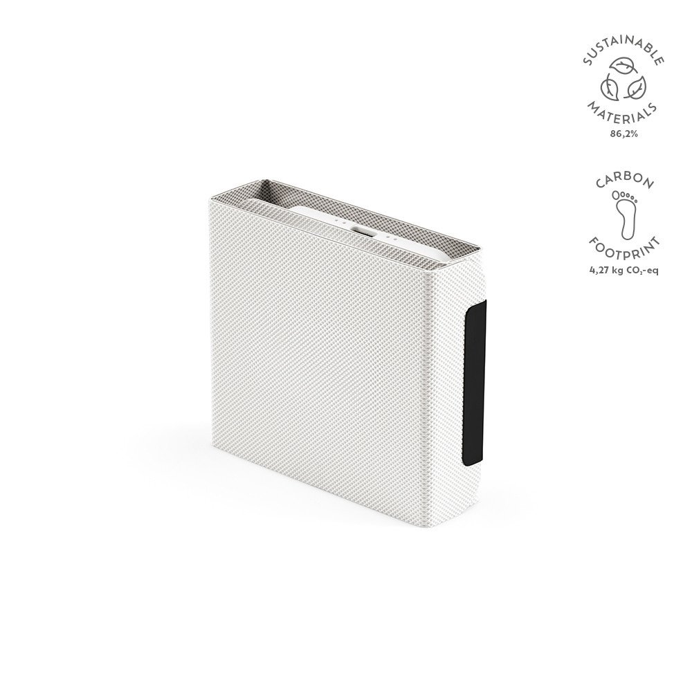 Linnaeus portable wireless charger made from rPU that enables simultaneous charging of 3 devices (mobile phone, earbuds and smartwatch - all these Apple devices). It comes with 15W of charging capacity which allows fast charging of the mobile phone or charging simultaneously all 3 devices at a slower pace. It comes with a color-matching cable (available in White or Black) that is 1 meter long. Packed inside an individual kraft box.