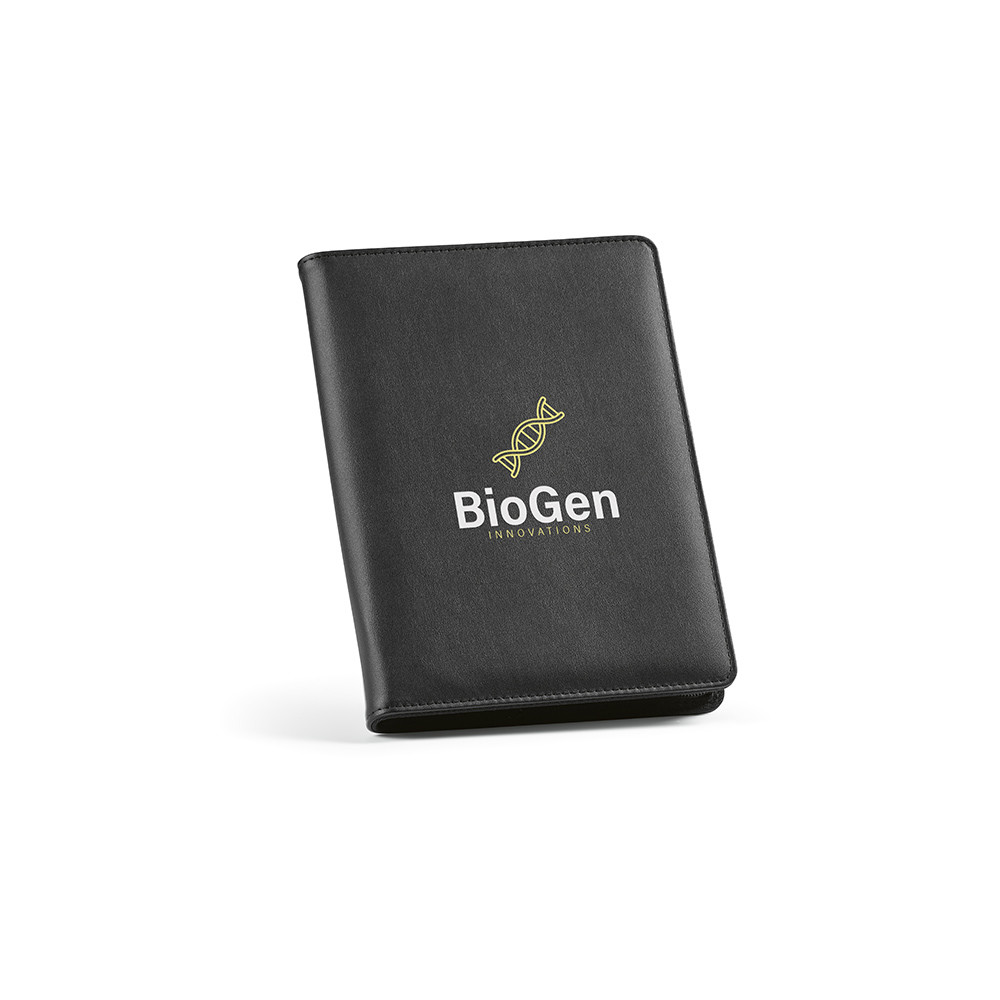 The Orwell A5 recycled PU folder features a zipper closure. It boasts a pad of 64 sheets of ivory FSC dotted paper (70 gsm), a designated space for date and page number, a phone holder (10 x 18 cm), 2 card slots and a convenient double pen holder, all to stay organized. All packed in an individual recycled kraft box.