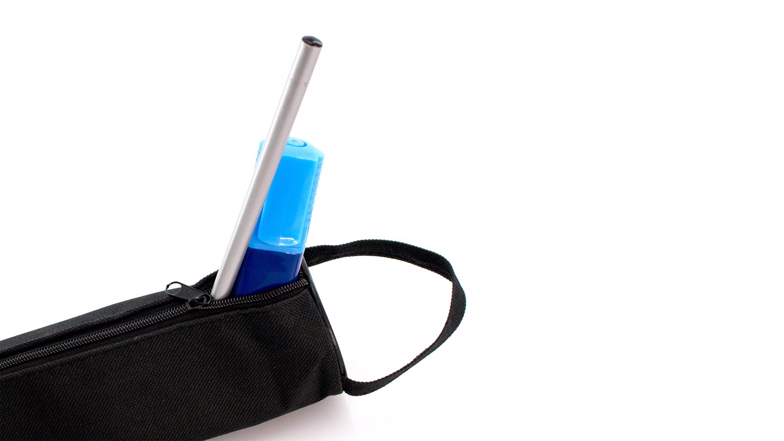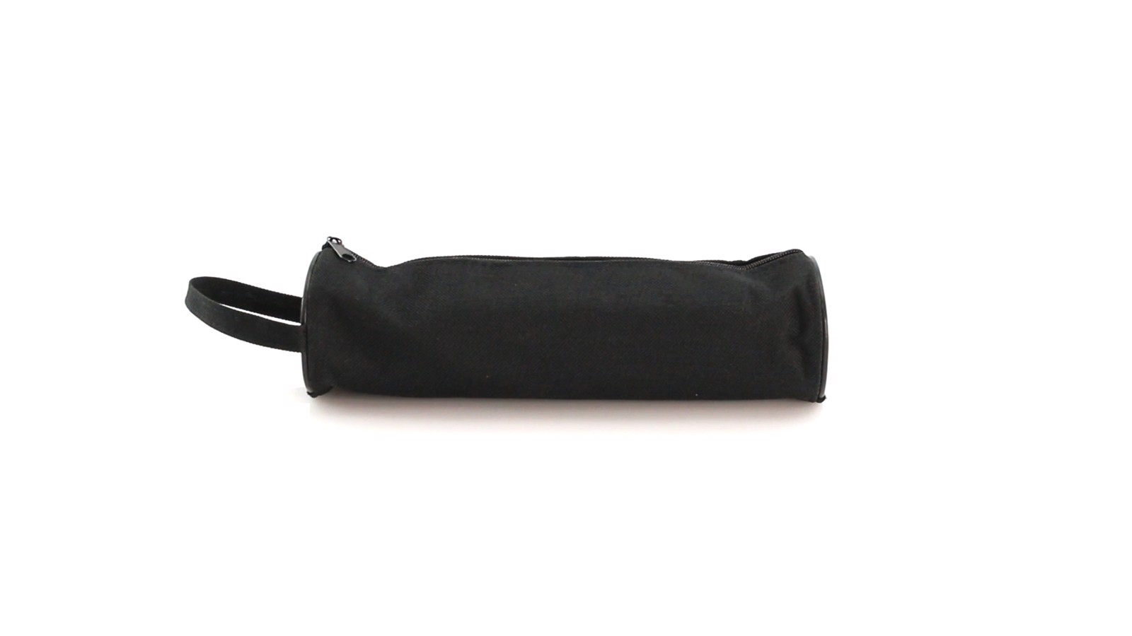 Classic zipper case with cylindrical design in resistant 600D polyester. With practical carrying handle and matching color zipper.