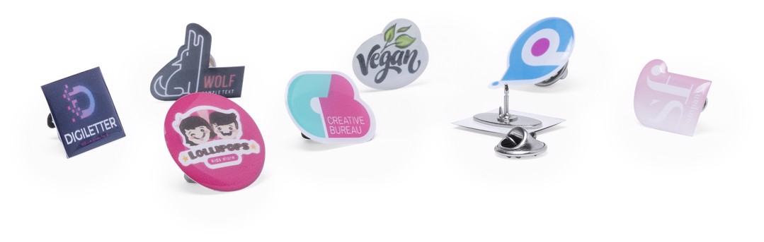 100% customizable pin especially designed for doming. Full color printing included and Doming included. Orders from 300 pieces. Set up cost not included.