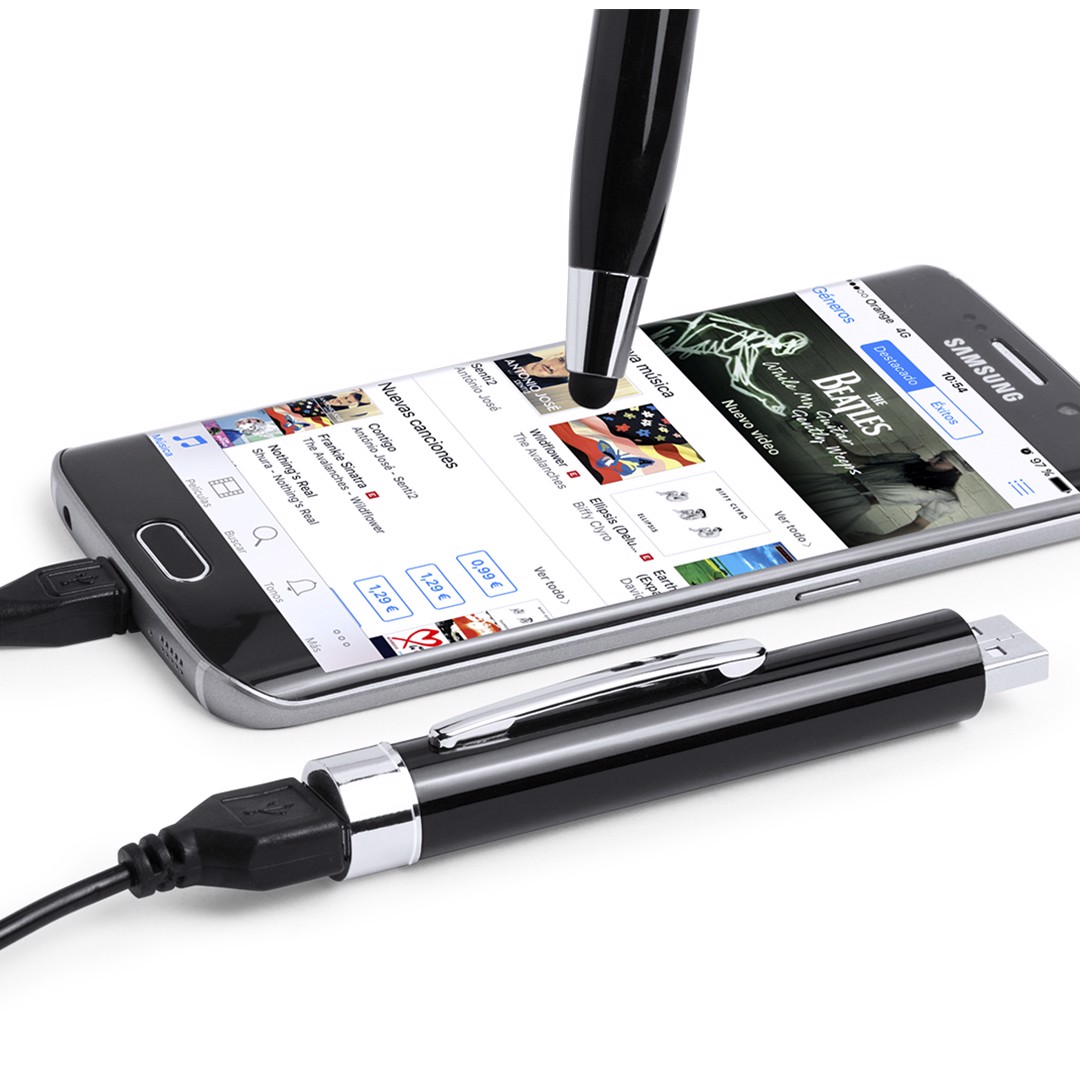 Multifunction technology ball pen with external 650 mAh charging capacity auxiliary battery, soft rubber pointer, with twist mechanism and black ink. Matching color micro USB cable included and presented in an attractive design box. The capacities shown in all our external auxiliary batteries are real, all of them incorporating non-recycled, grade A batteries, with a service life of at least 500 charging cycles, and complying with CE regulations. In addition, they are manufactured according RoHS standards, and in compliance with the following safety requirements: Power bank overcharge protection system. Complete discharge protection system, which increases the durability of the power bank. Blocking system to prevent short circuits. Constant charging transfer system, in accordance with the capacity of the target device. 650 mAh. Micro USB Input. Black Ink. Cable Included