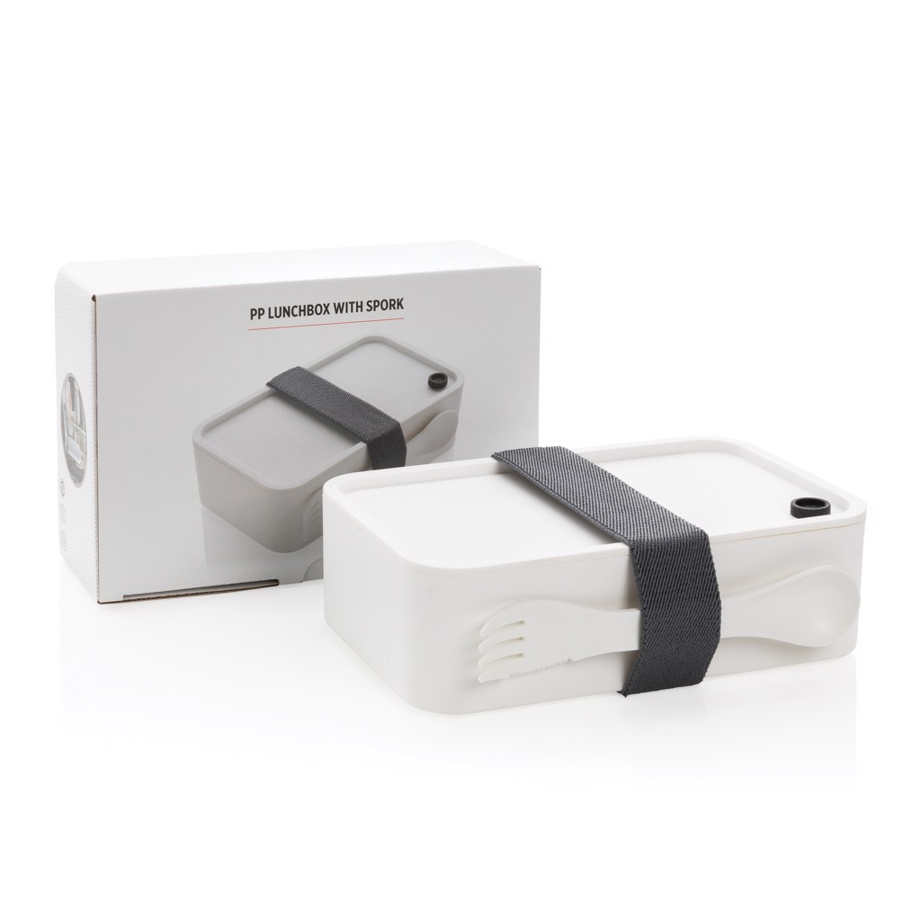 PP lunchbox with spork - White