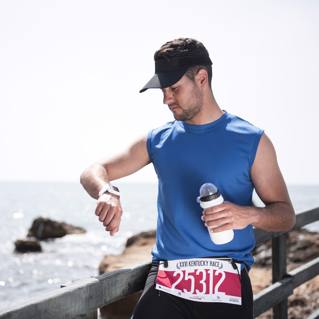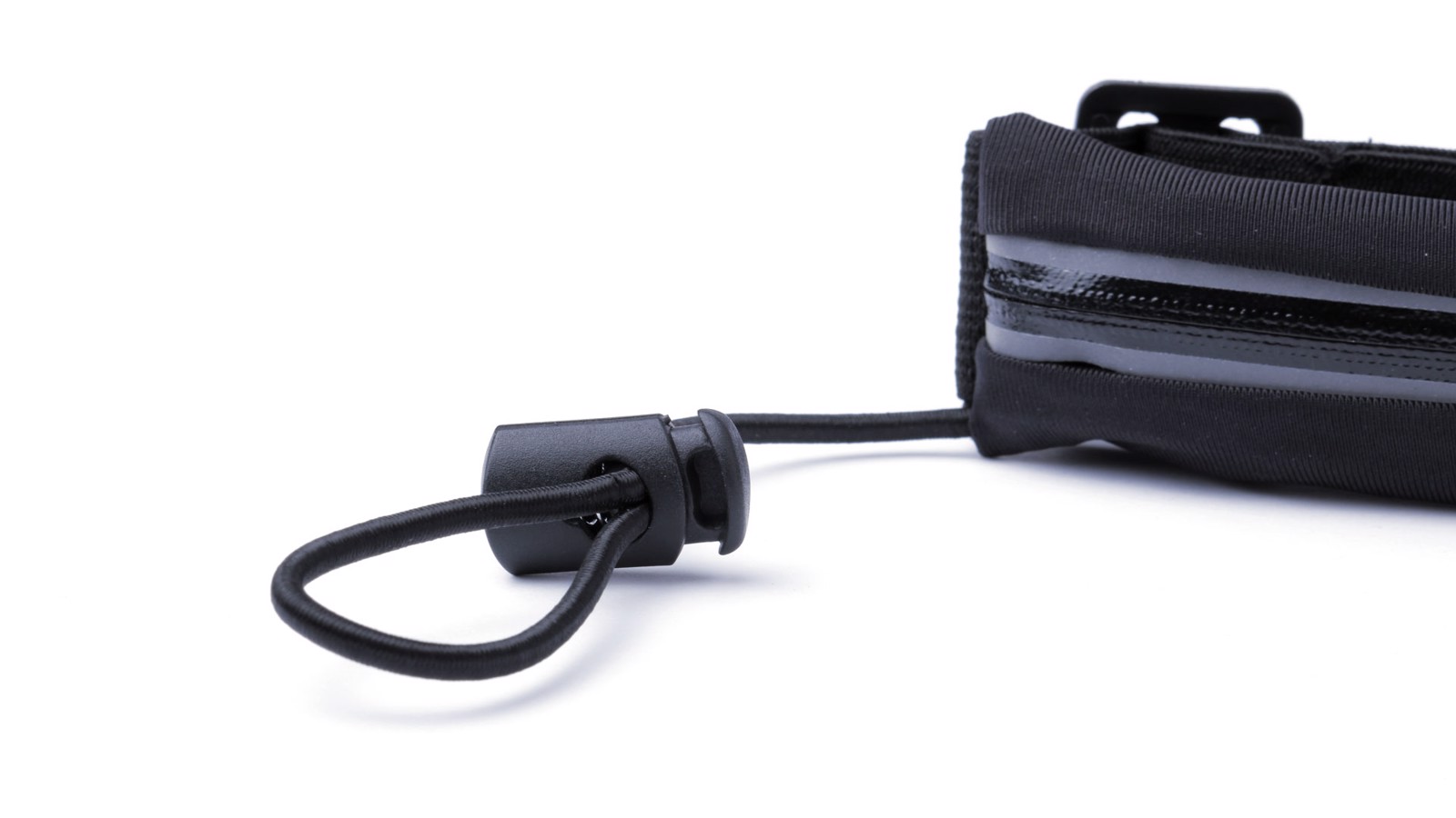 High quality, splash-resistant, waist bag with number holder. In spandex material with a smooth finish and with a grey color zipper. Designed for sports and leisure activities. Elastic bands for number with fitting accessories. With adjustable elastic waist bag and buckle closure.