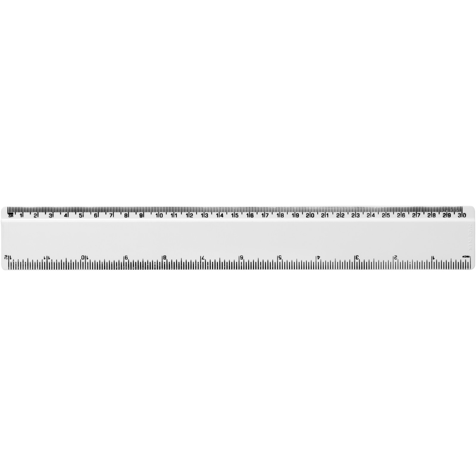 Solid recycled plastic ruler with markings available in both inches and centimetres.