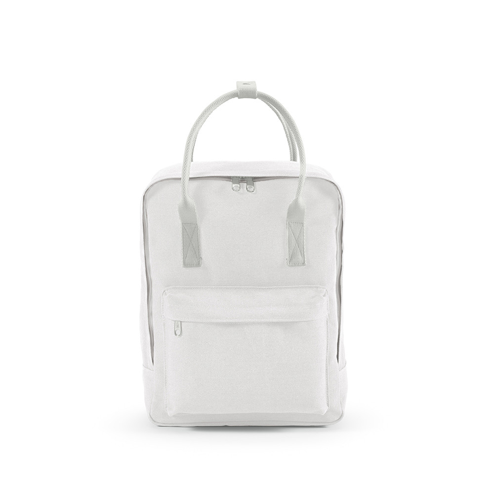 Crafted from recycled cotton canvas (450gsm), this 18L backpack features a large main compartment a front zipped pocket and two handles with strap fastener. The adjustable shoulder straps in rPET are provided for enhanced convenience. Supplied in a recycled PE polybag.