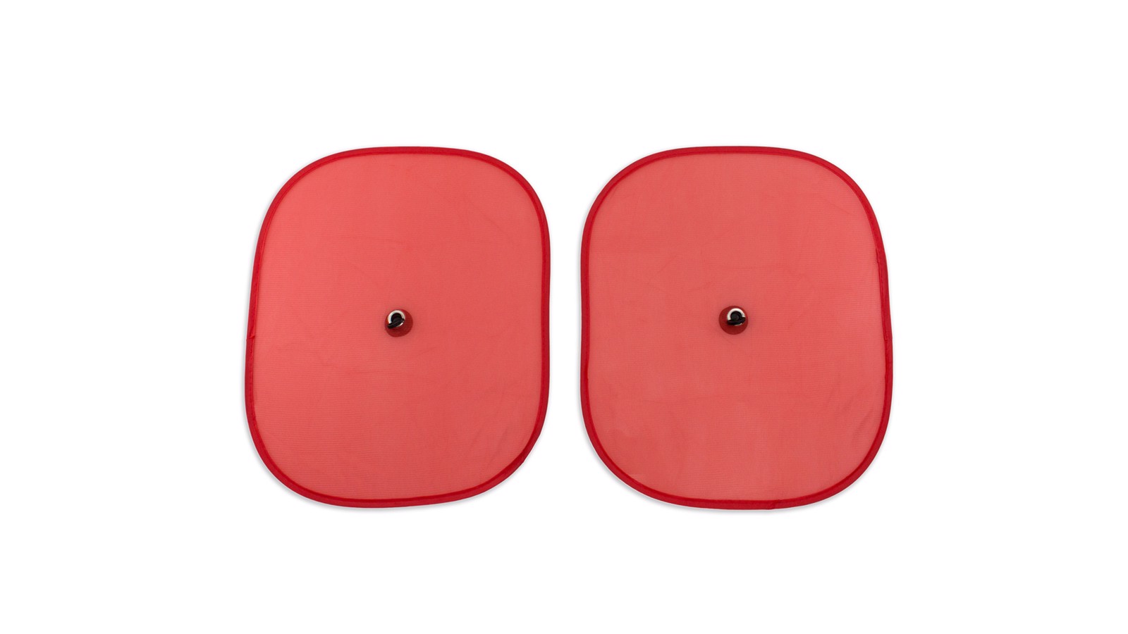 Set of 2 folding window sunshades with mesh body in bright and varied colors. With suction cups t and PVC cover with hooks closing. 2 Pieces