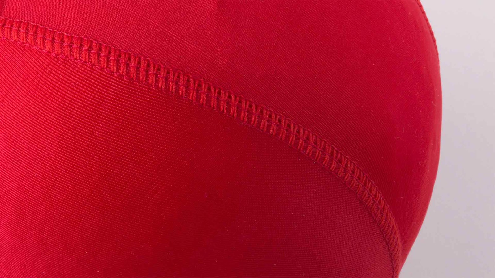 Swimming pool cap in brightly colored spandex material for a solid and soft fit on the head.