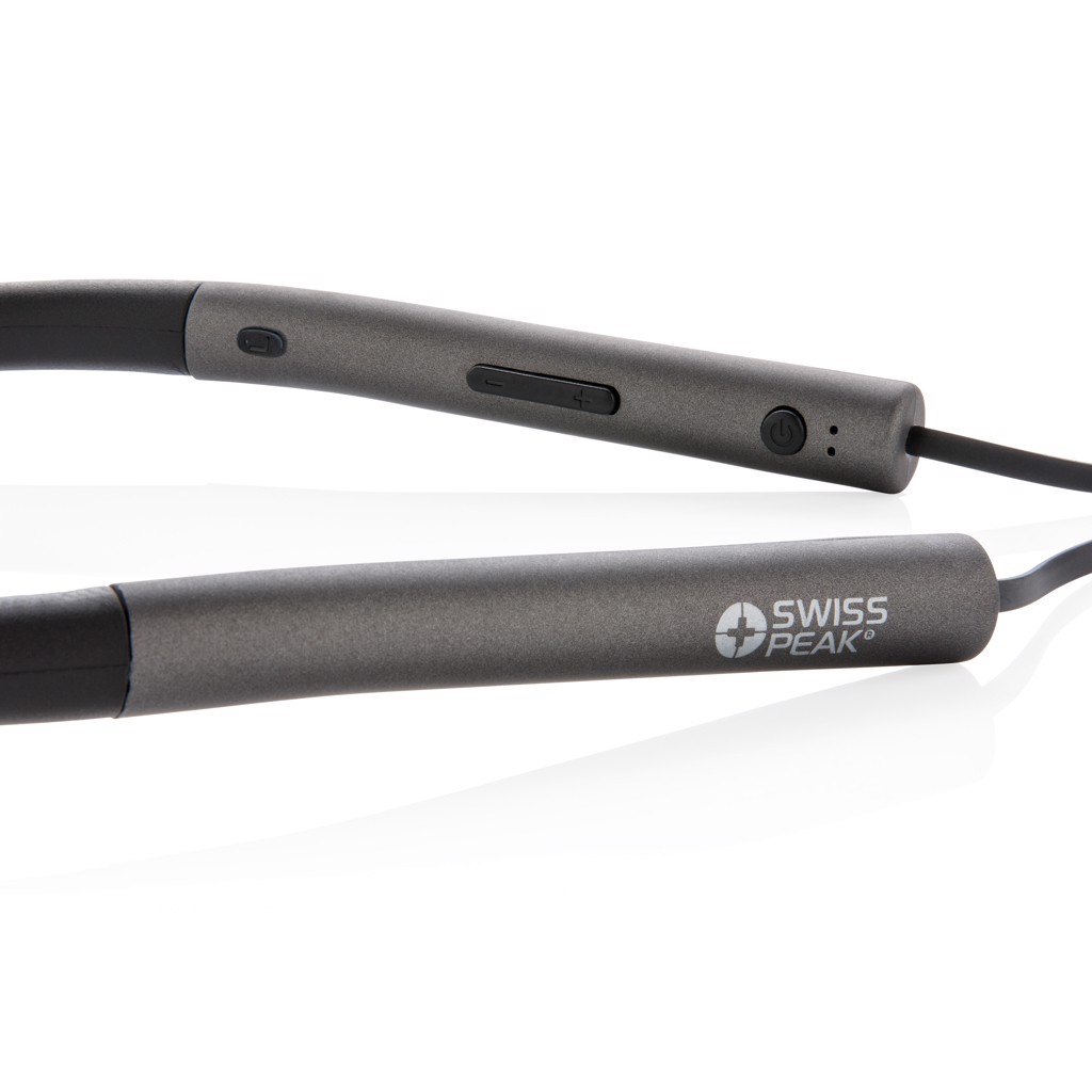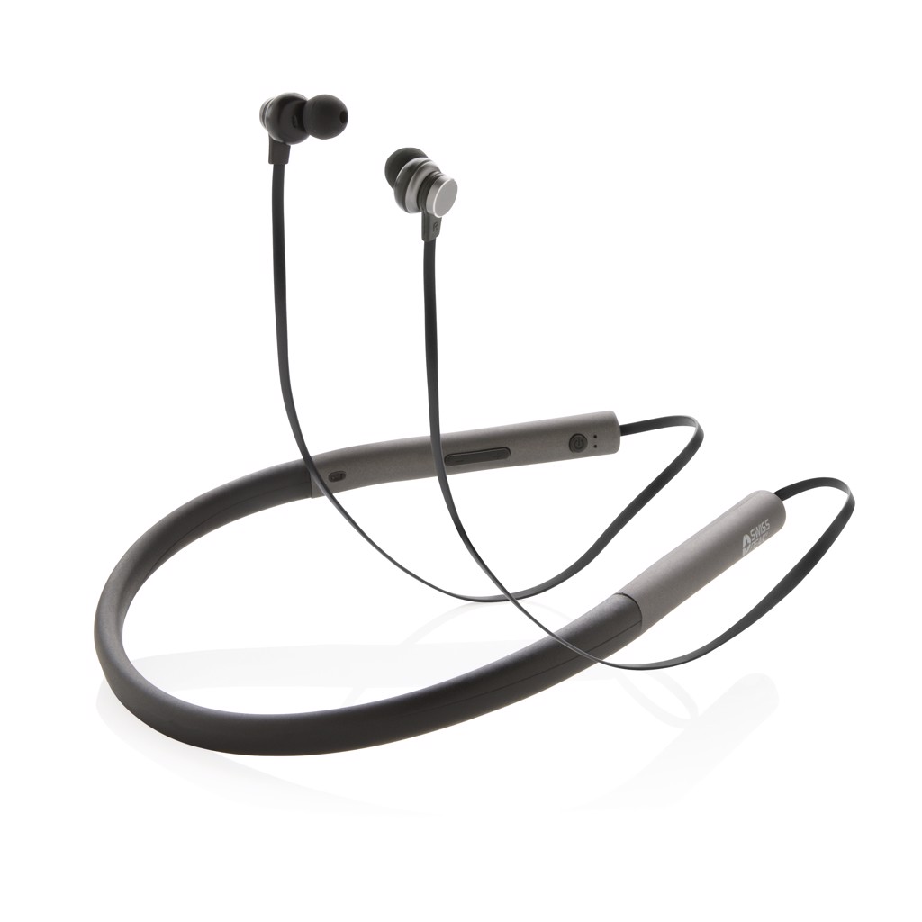 Enjoy a rich sound performance wherever you go. The Swiss Peak earbuds combine comfortable and balanced fit with a modern design. Using BT 4.2 for optimal connection. Constructed from high quality ABS with magnetic ends, to wear them clicked together when not in use. Comes with integrated 80-mAh battery that allows you to play up 6 hours of your favourite music. Including luxury travel pouch to take the earbuds anywhere you go.