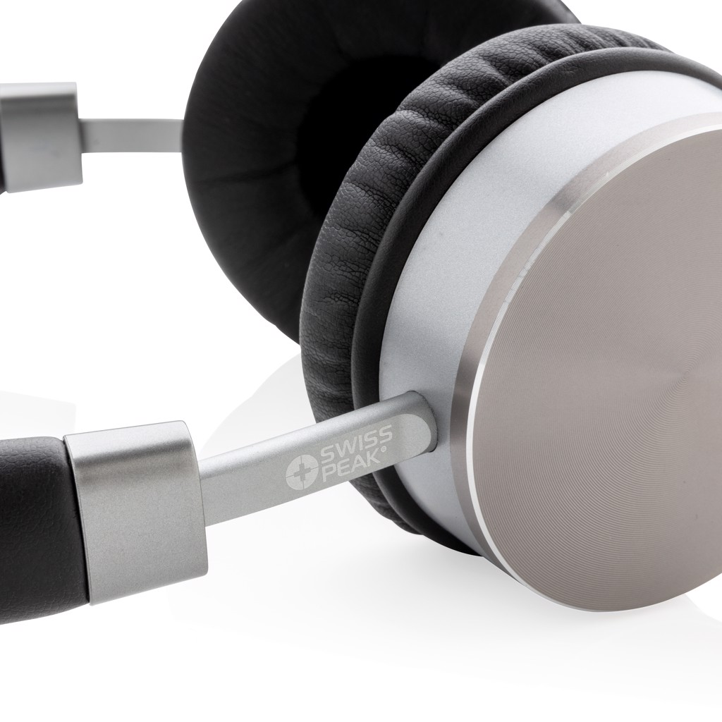 Wireless stereo headphone with high quality 3W speaker and 105DB sensitivity for a perfect sound experience. The 350 mAh battery allows you to listen to your music for up to 8 hours on one charge and recharging takes only 1.5 hours. Operating distance up to 10 metres. The headphone can be folded flat so they fit in the Swiss Peak travel pouch included. With aluminium casing and PU air cushions, the headphone is comfortable enough to wear for hours. Including AUX cable to use by wire.