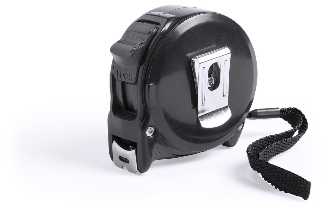 3 metre flexometer with metal blade and locking mechanism. With soft finished body especially designed for pad printing. With metallic clip for belt and carrying belt. Presented in an individual box. Clip Included