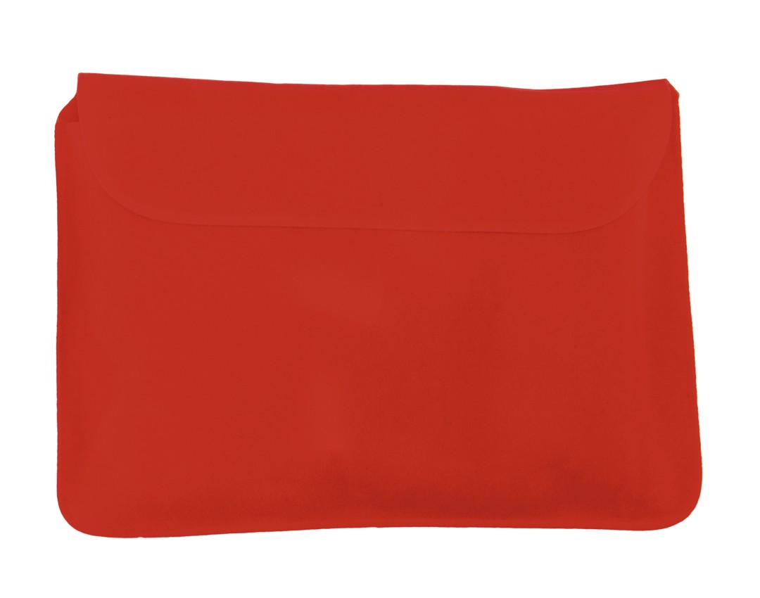 Travel set of 3 accessories presented in a soft case in bright tones. Includes a soft and comfortable black microfiber mask with matching color double elastic fit, inflatable neck cushion in velvet, and a pair of orange earplugs in comfortable EVA material. 3 Accessories