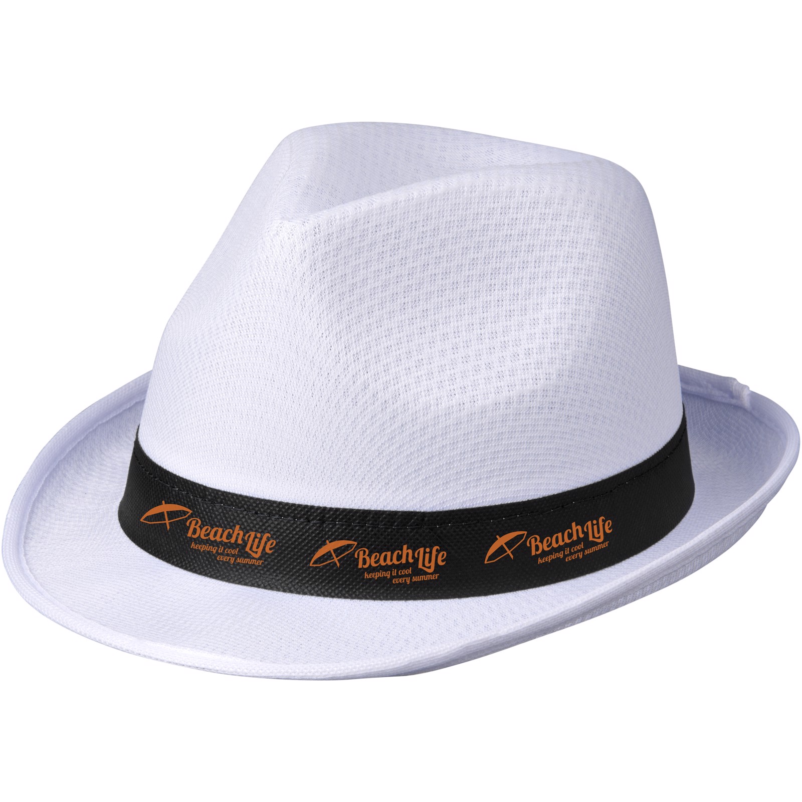 Trilby set of hat and ribbon. Hat: 100% Polyester. Ribbon: non-woven 100 g/m² Polypropylene.