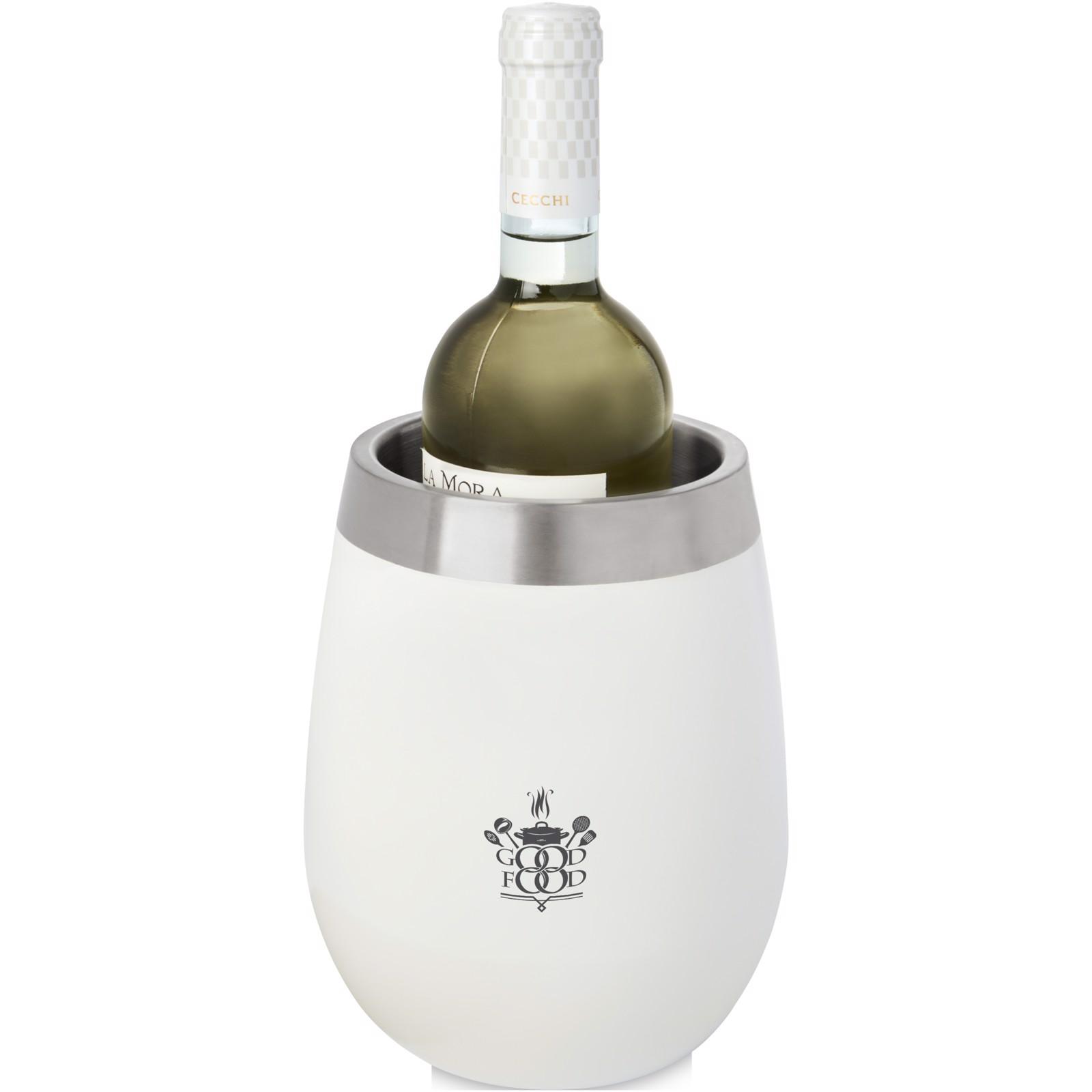 Double-walled stainless steel wine cooler with a colourful outer layer. The interior steel layer is easy to clean and keeps the wine nice and chilled.