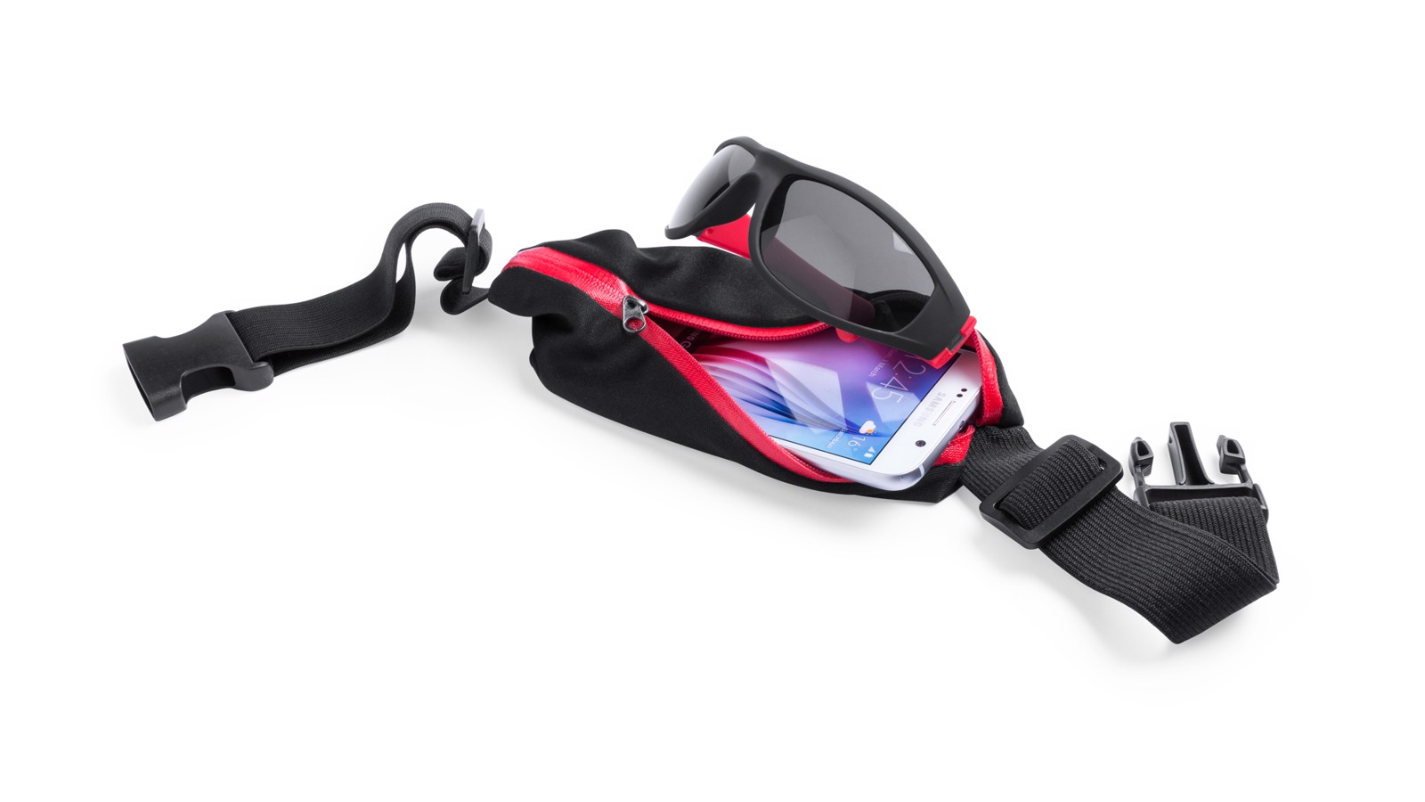 High quality, splash-resistant, waist bag. In spandex material with a smooth finish and with a grey color zipper. Designed for sports and leisure activities. With adjustable elastic waist bag and buckle closure.