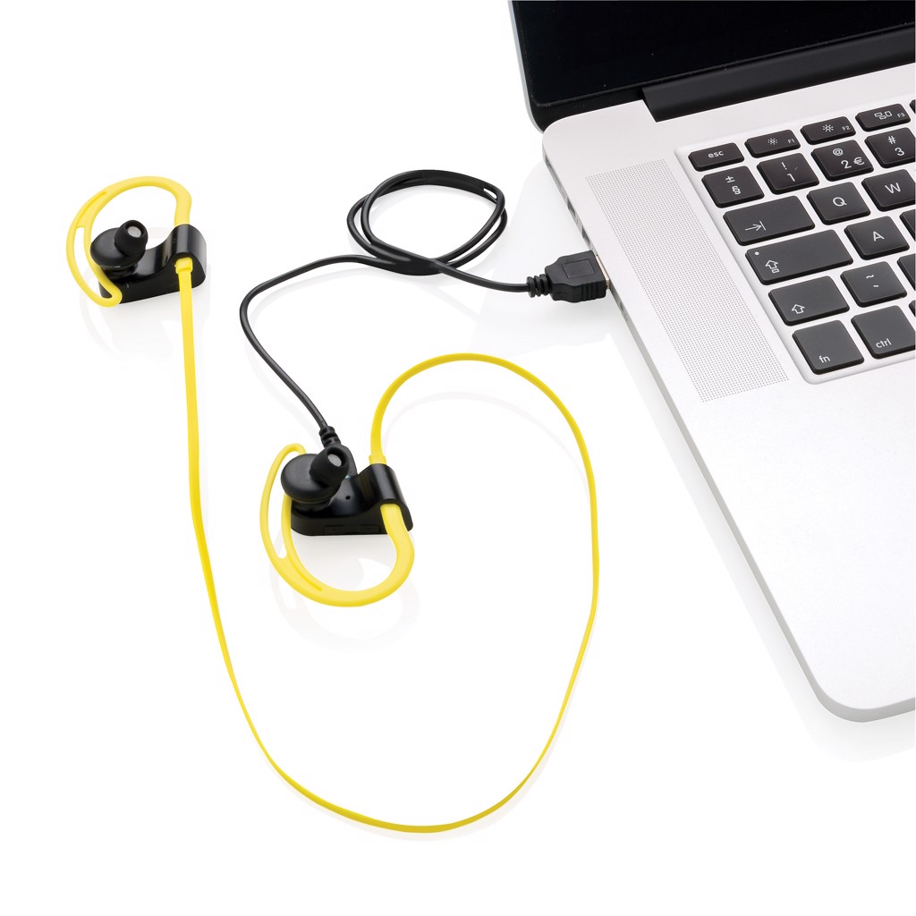 Wireless sport earbuds with high quality wireless BT 4.1 connection for easy connection and perfect sound quality. The ABS casing is sweat proof so optimized for sports. The ergonomic design guarantees perfect fit during your activities. The earbud has a volume up/down button, next/previous song button and a mic to answer calls. Operating distance up to 10 metres. Play time up to 4 hours on one charge and standby time of 120 hours.