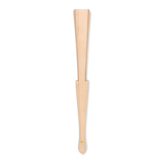 Manual fan in wood with cork fabric sheeting. Cork is 100% natural material. Due to its structural nature and surface porosity the final print result per item may have deviations.