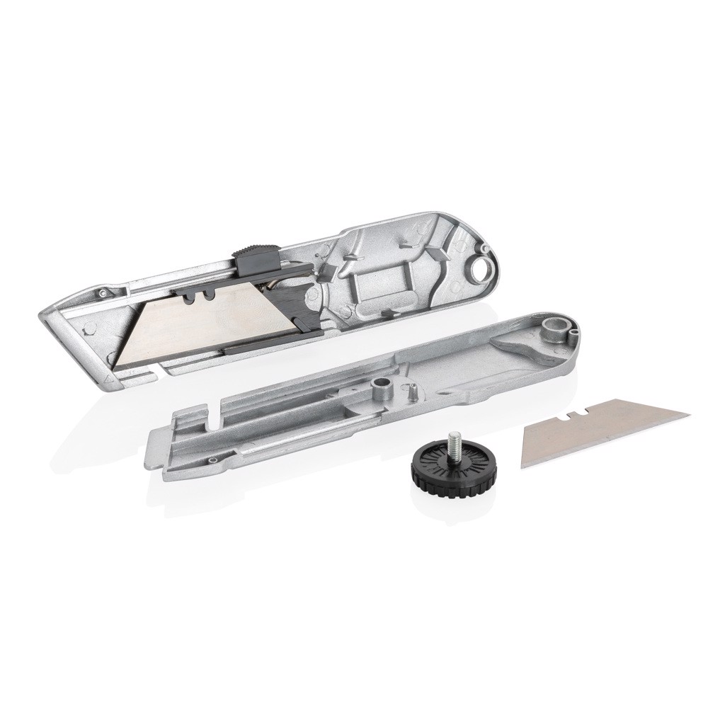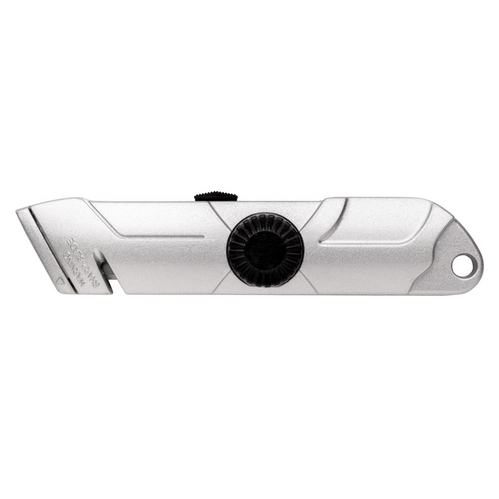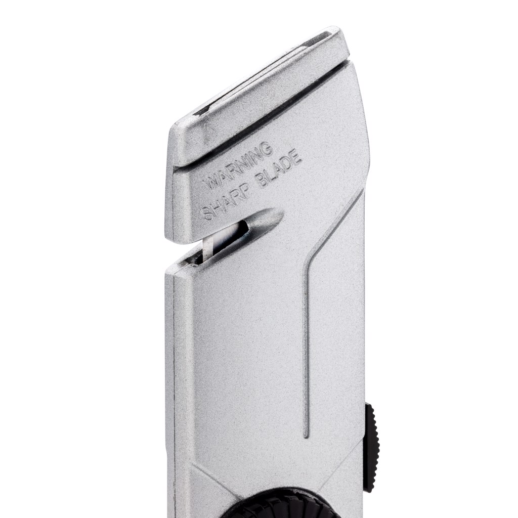 Heavy duty cutter made out of zinc alloy. WIth sliding button to make sure the knife is always retracted after usage. Including one extra 11-921 refill blade that is kept inside the body of the knife. Blades made of stainless steel.
