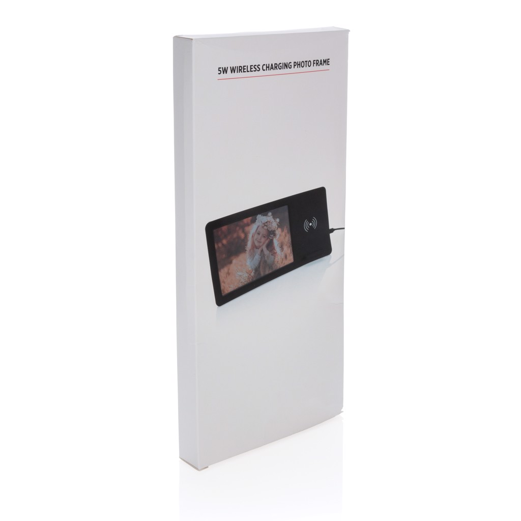 Keep in touch with your loved ones while charging your phone with this 5W wireless charger with photo frame. The photo frame fits pictures up to 10 x15 cm. Including 150 cm PVC free TPE micro usb cable. Wireless charging compatible with all QI enabled devices like Android latest generation, iPhone 8 and up. Input: 5V/2A; Output: 5/1A - 5W