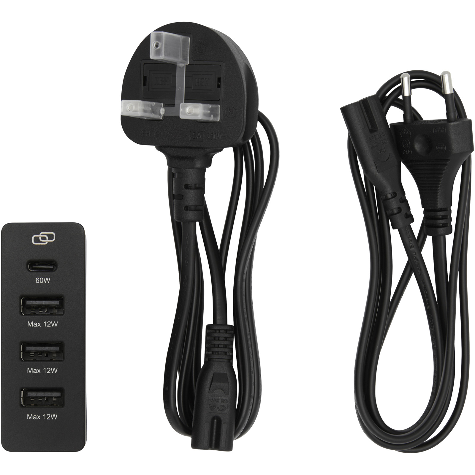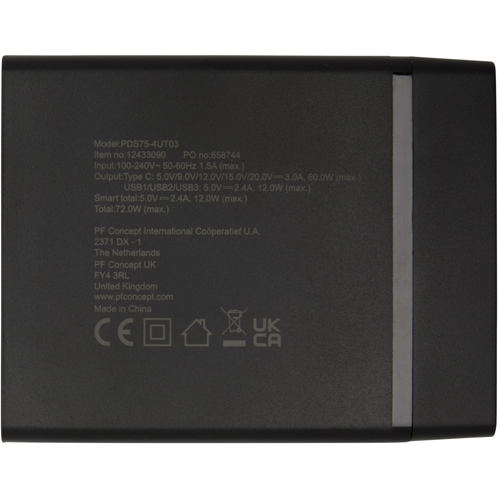 The ADAPT PD power station is an ultra fast solution for a more sustainable and more efficient charging experience. Made with recycled plastic, this power station combines sustainability and functionality in one sleek design. It comes with both EU and UK power cords, ensuring compatibility with various outlets (AC 100-240V 50/60Hz). Featuring 3 USB-A ports and 1 USB-C port, this power station provides the ultimate formula for simultaneous charging at rapid speed. The USB-C port supports multiple output voltages including 5V/3A, 9V/3A, 12V/3A, 15V/3A and 20V/3A, with a maximum power of 60W. The USB-A ports deliver a steady output of 5V/2.4A (12W max.) each. The Type-C and USB-A combination can provide a maximum power of 72W. Delivered in a premium kraft paper box with a colourful sticker.